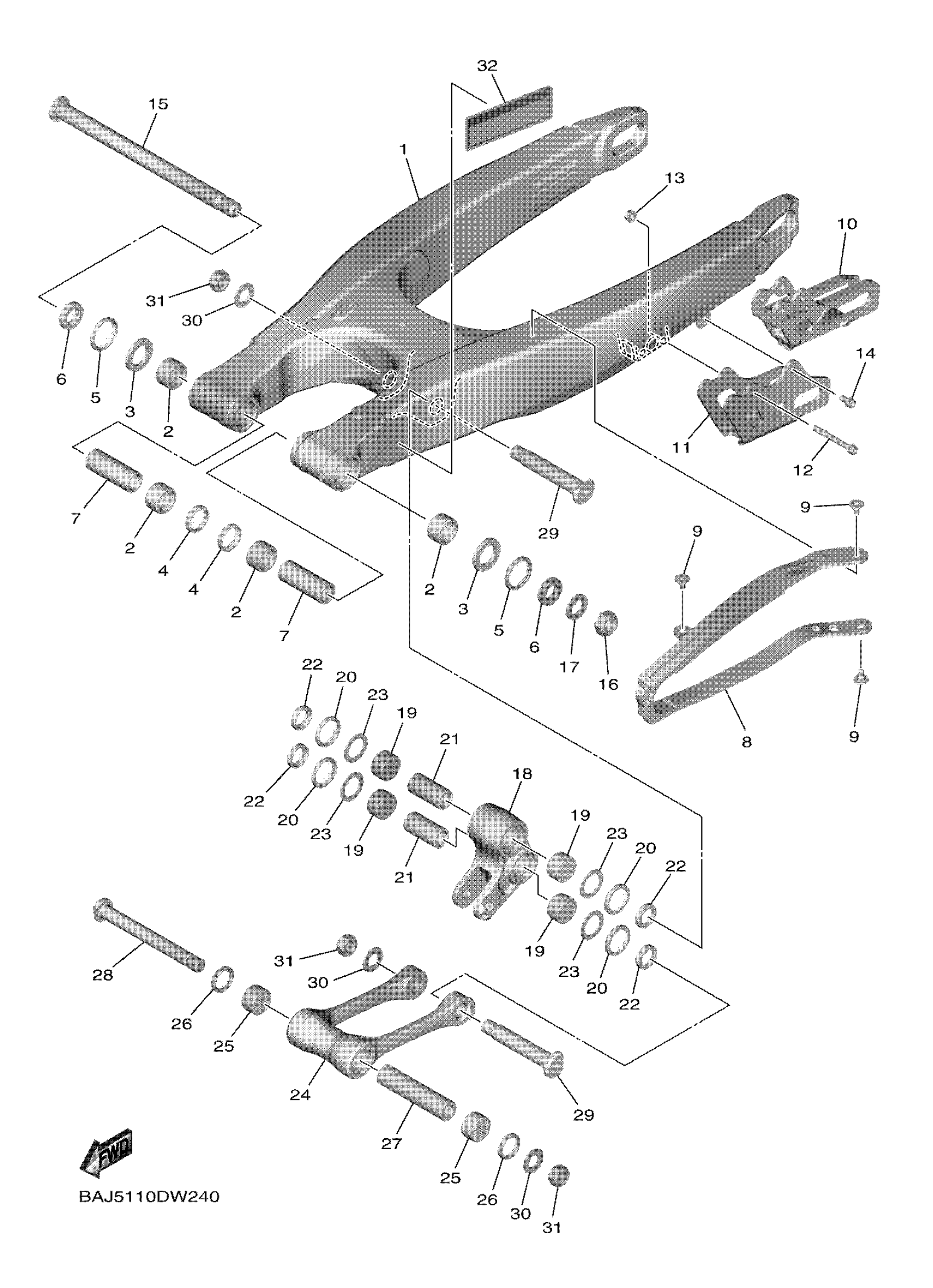 Yamaha YZ250FXP (YZ250FX) BAJF 2023 REAR ARM Diagram