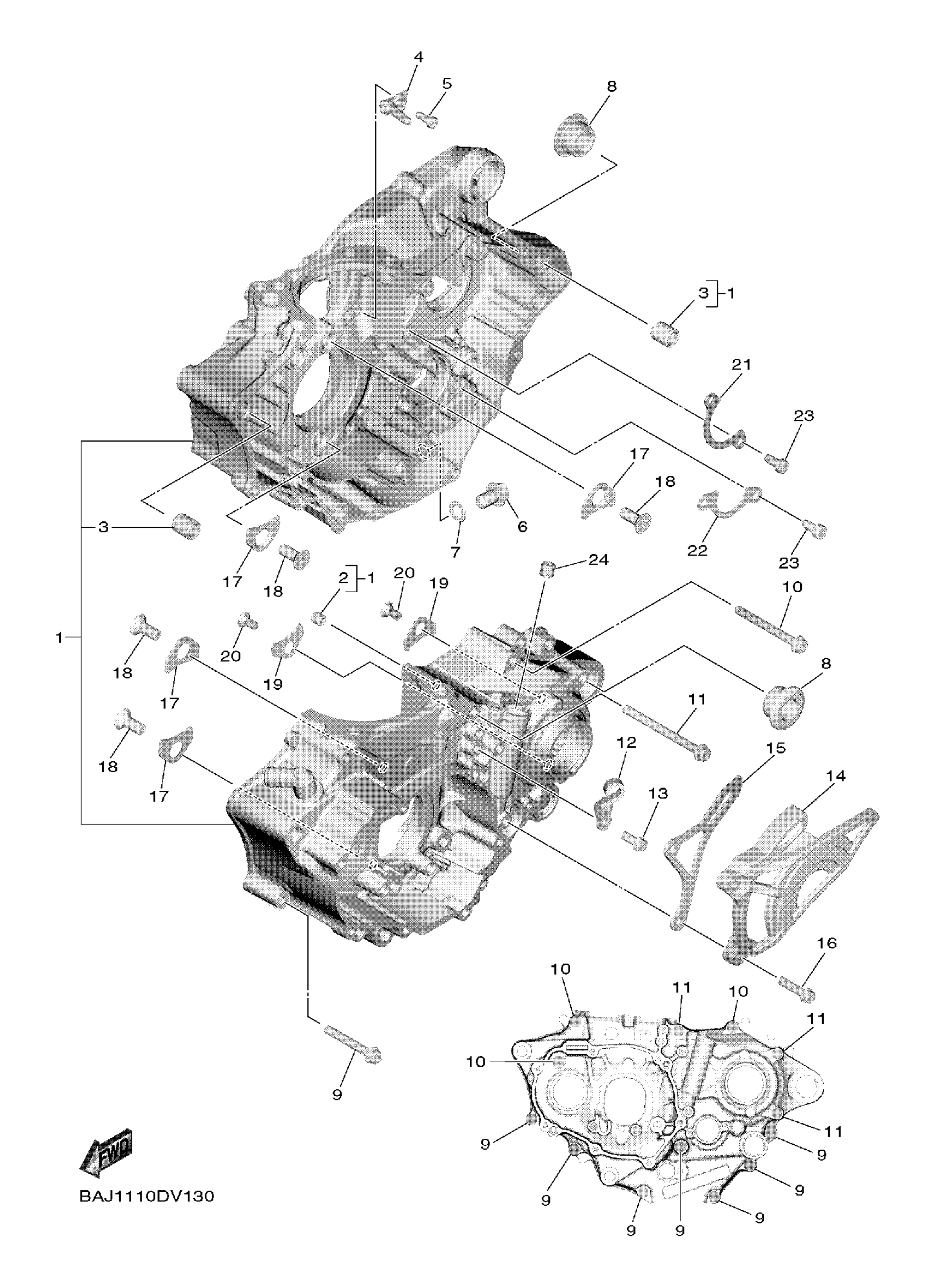 Yamaha YZ250FXS (YZ250FX) BXA1 2025 CRANKCASE Diagram