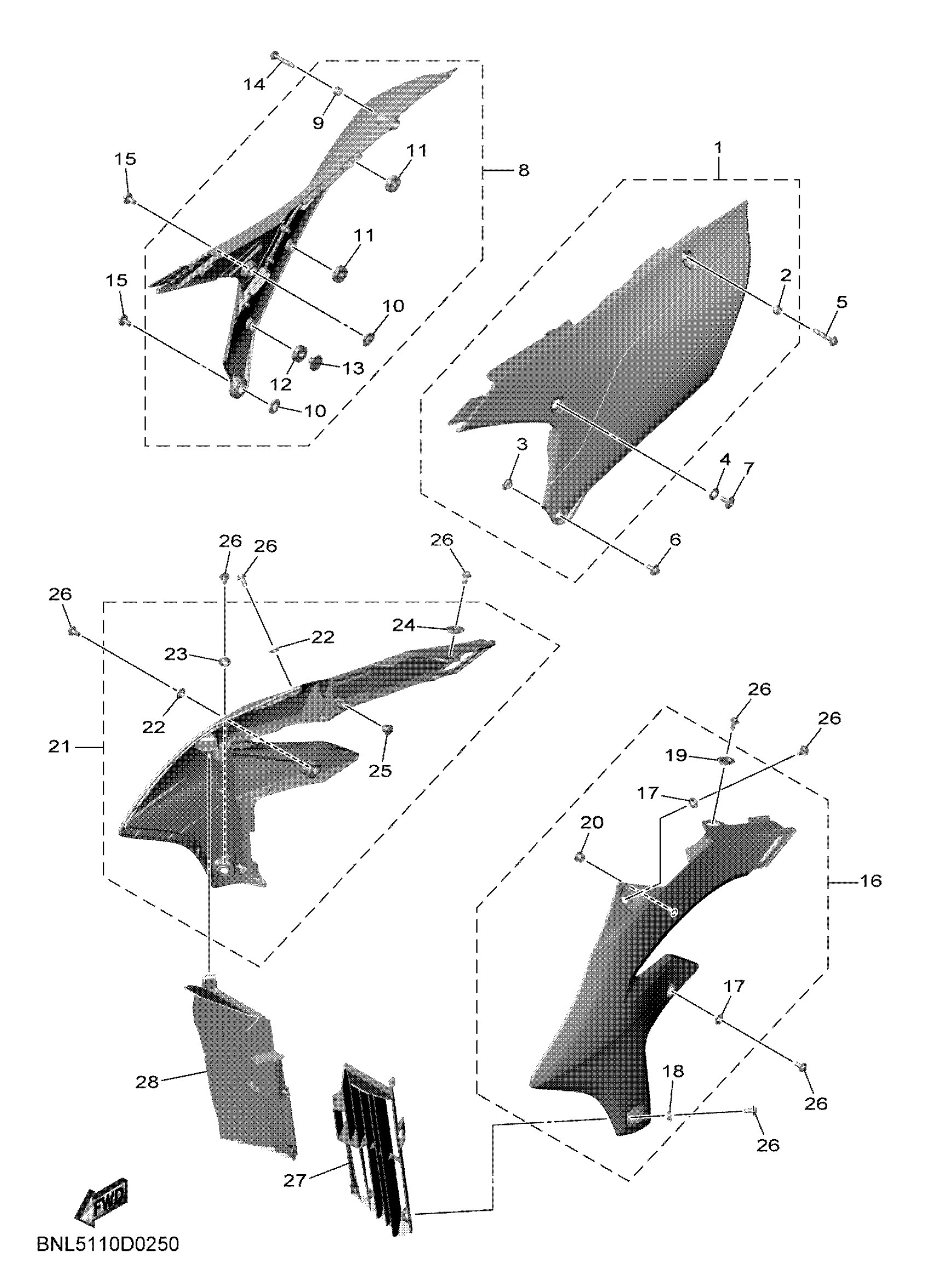 Yamaha YZ250FXT (YZ250FX) DP31 2026 SIDE COVER Diagram