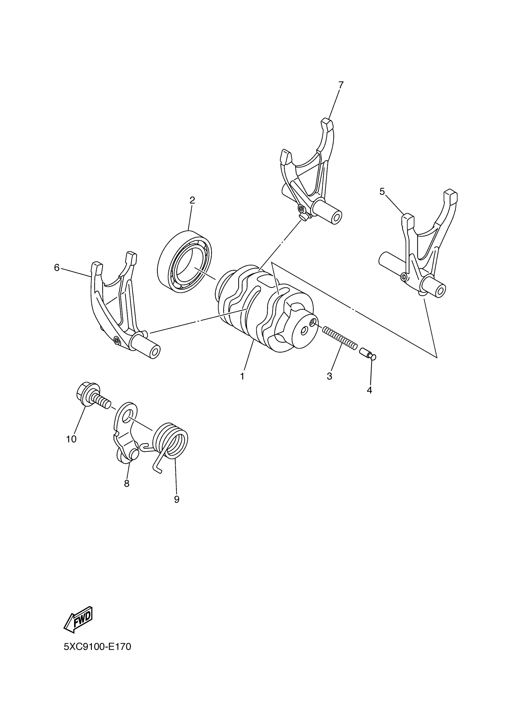 Yamaha YZ250FYW (YZ250F) 5XCR0 2009 SHIFT CAM FORK Diagram