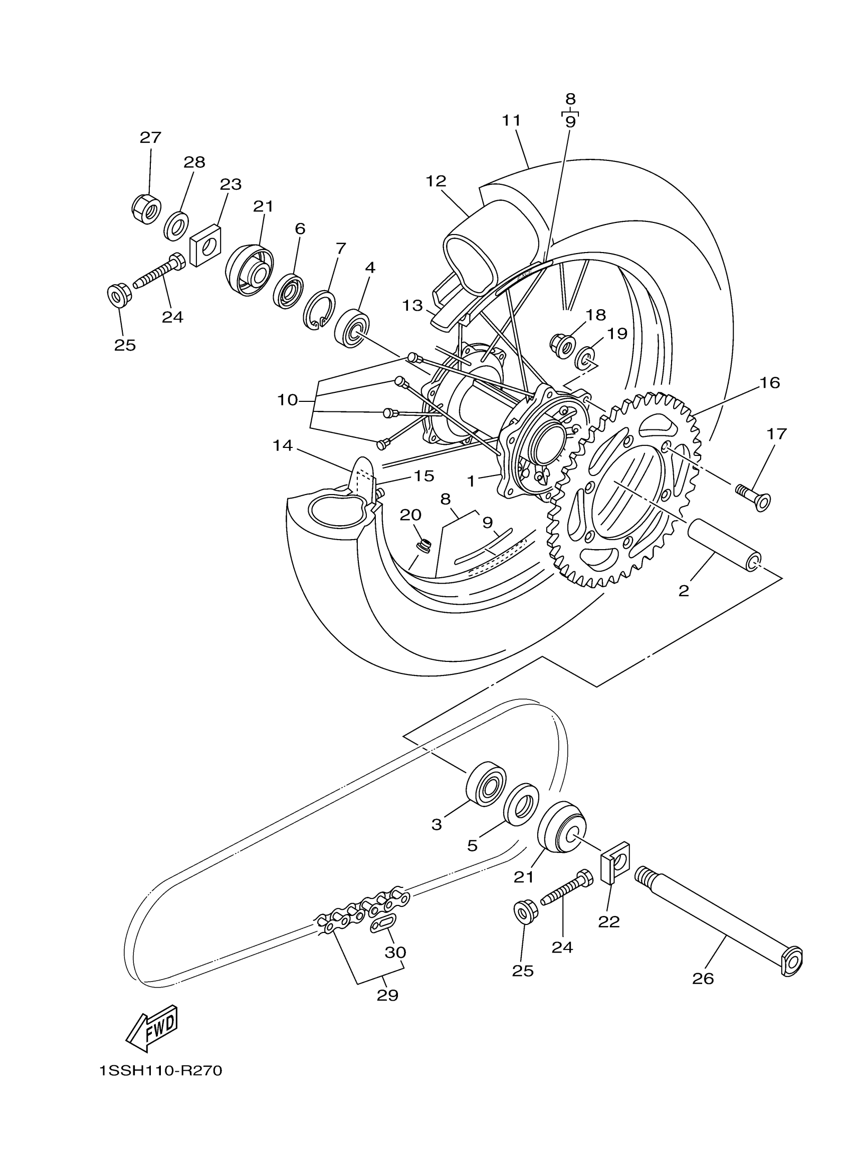 Yamaha YZ250G2 (YZ250G) 1SSH 2016 REAR WHEEL Diagram