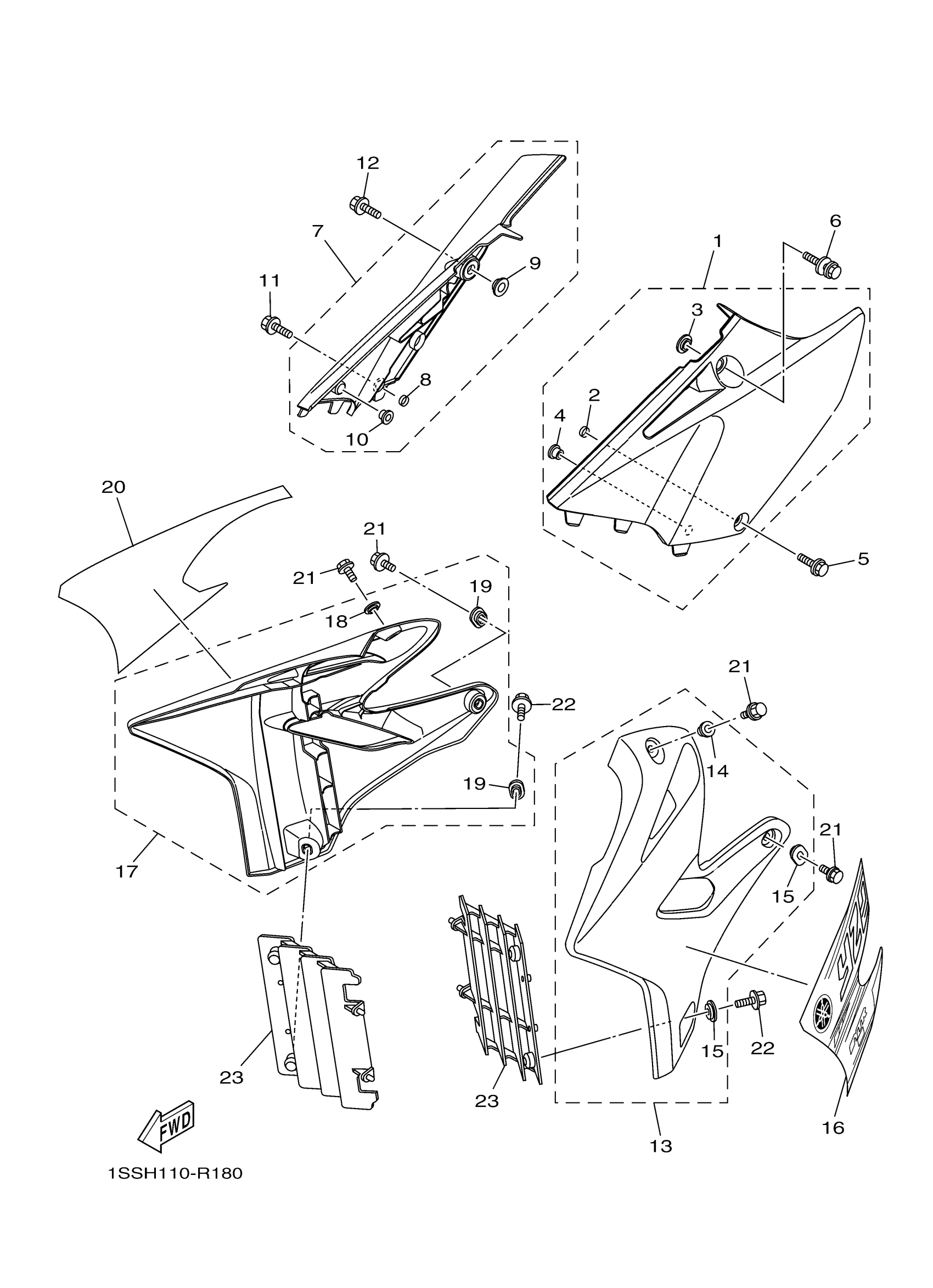 Yamaha YZ250G2 (YZ250G) 1SSH 2016 SIDE COVER Diagram