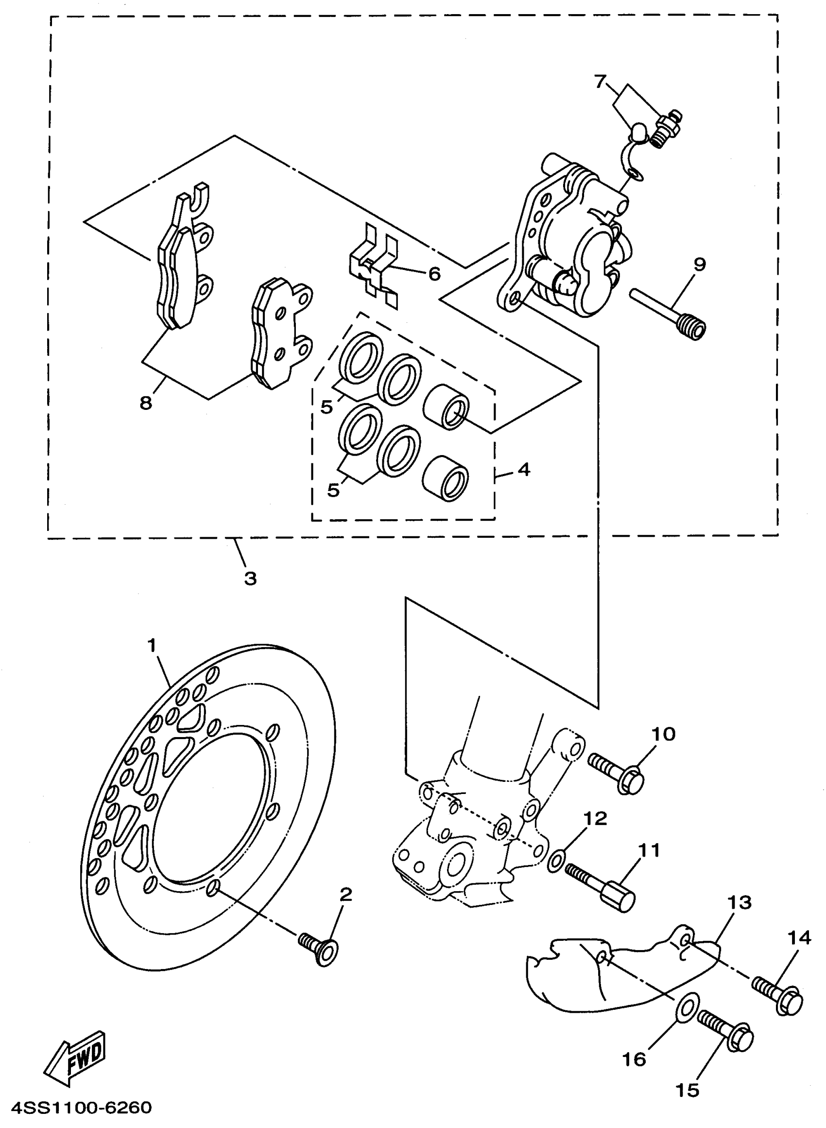 Yamaha YZ250H1 (YZ250H1) 1996 FRONT BRAKE CALIPER Diagram