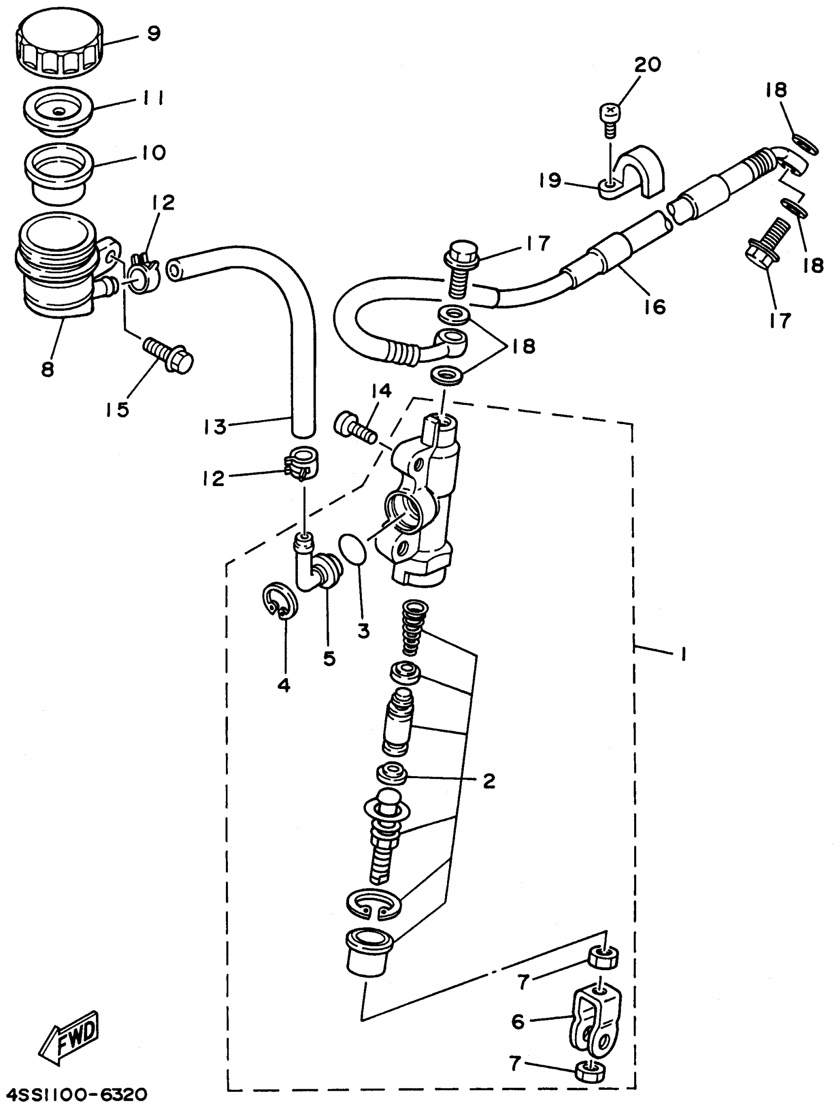 Yamaha YZ250H1 (YZ250H1) 1996 REAR MASTER CYLINDER Diagram
