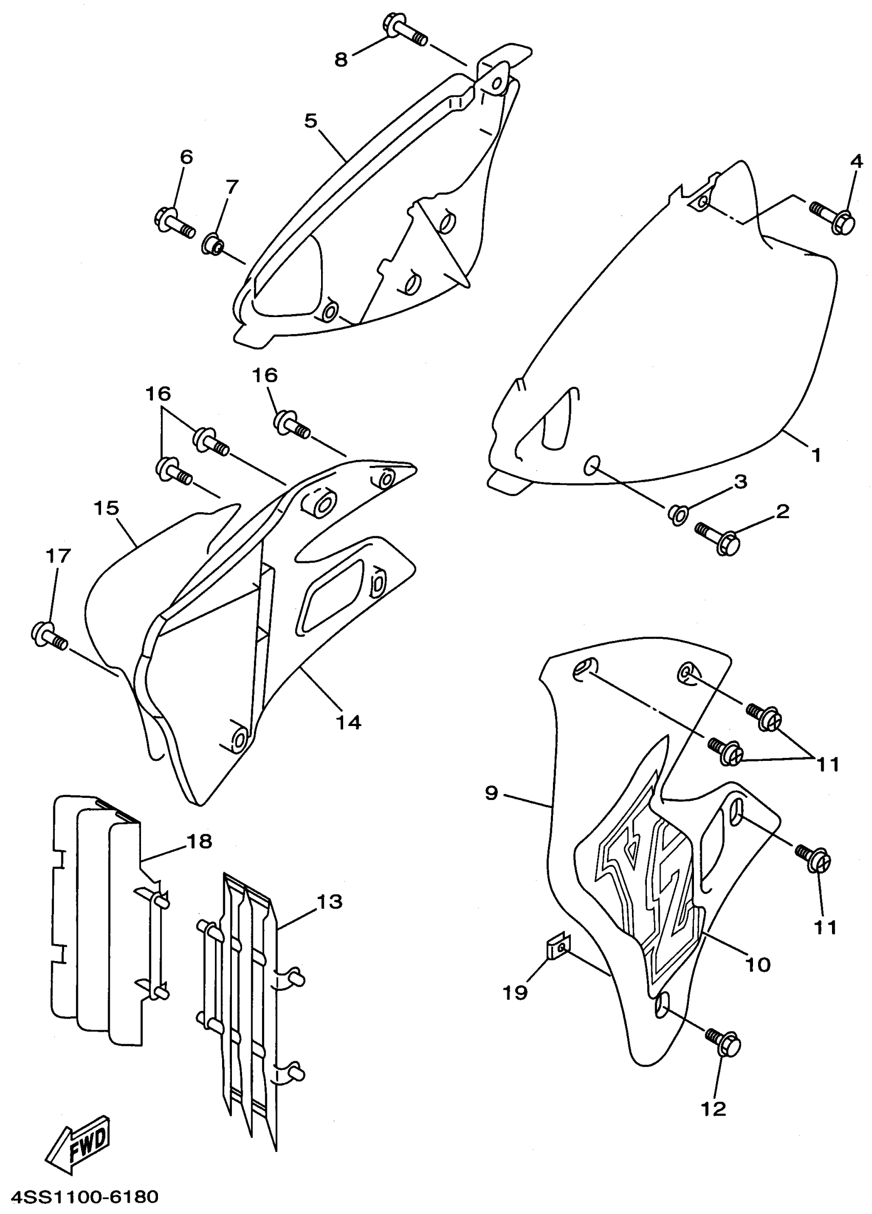 Yamaha YZ250H1 (YZ250H1) 1996 SIDE COVER Diagram