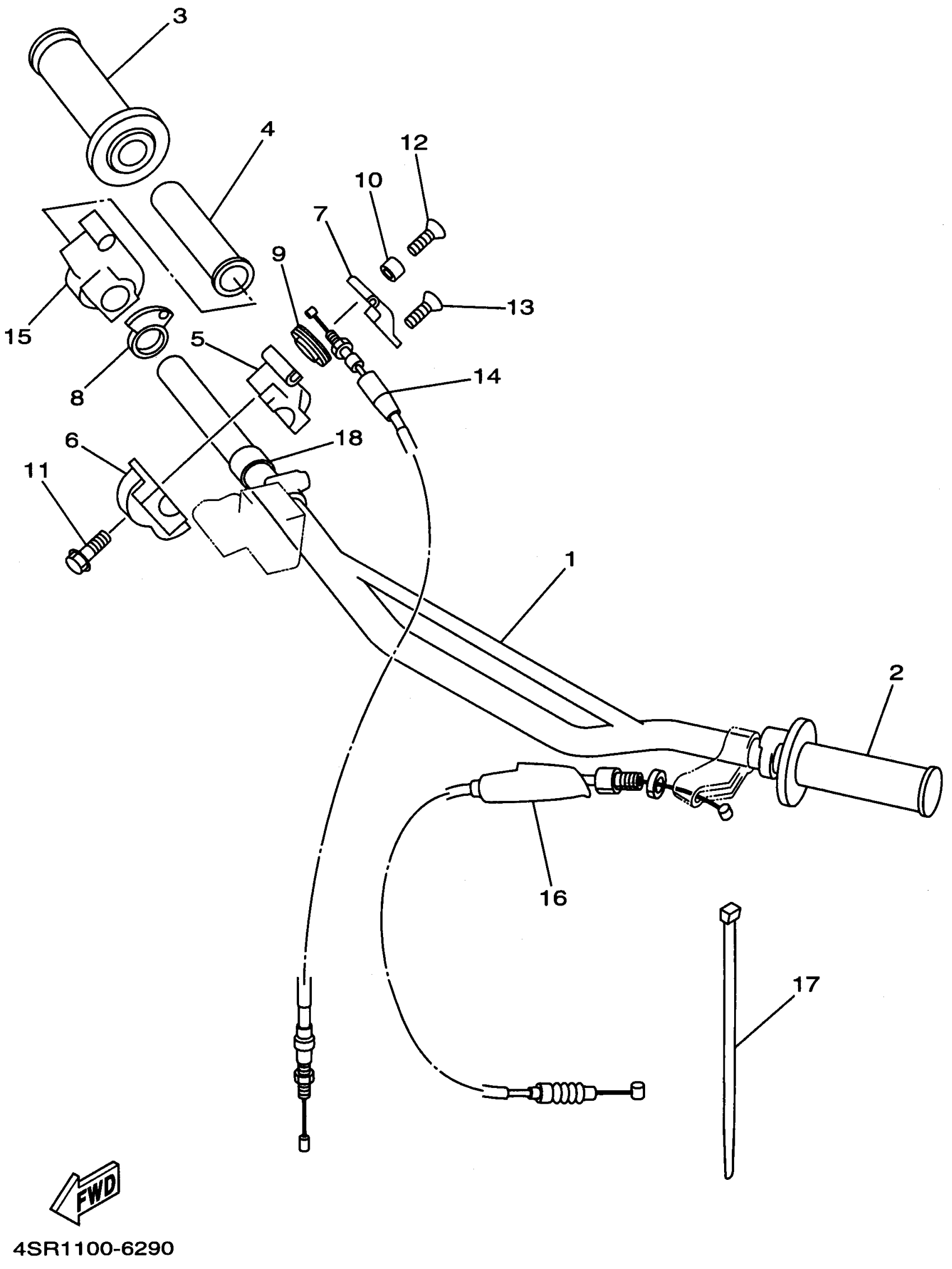 Yamaha YZ250H1 (YZ250H1) 1996 STEERING HANDLE CABLE Diagram