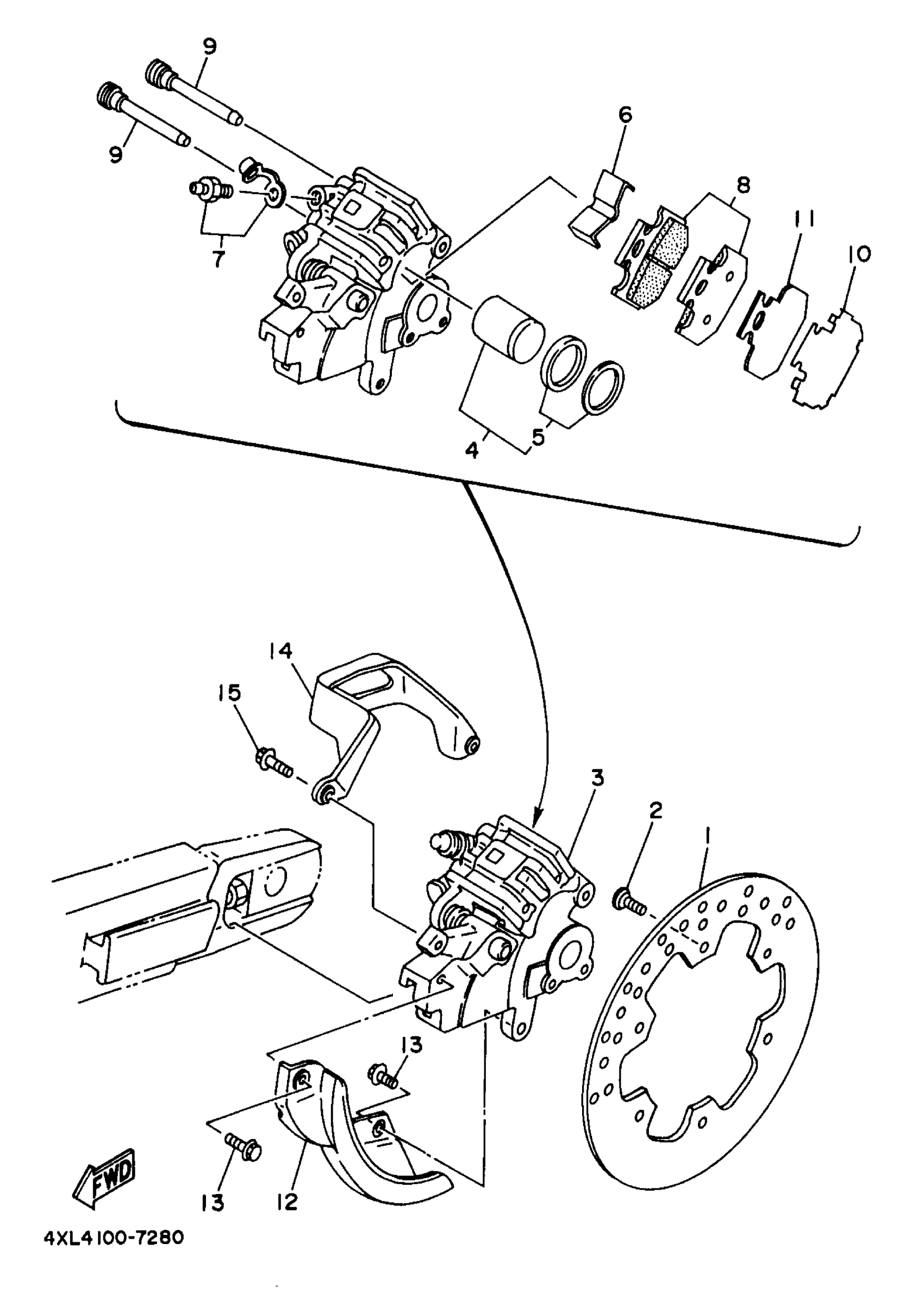 Yamaha YZ250J1 (COMPETITION) 1997 REAR BRAKE CALIPER Diagram