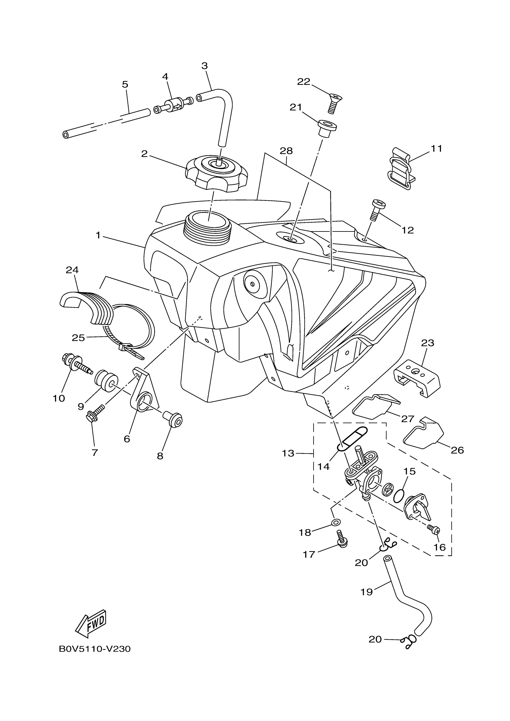 Yamaha YZ250L2 (YZ250) B9U5 2020 FUEL TANK Diagram