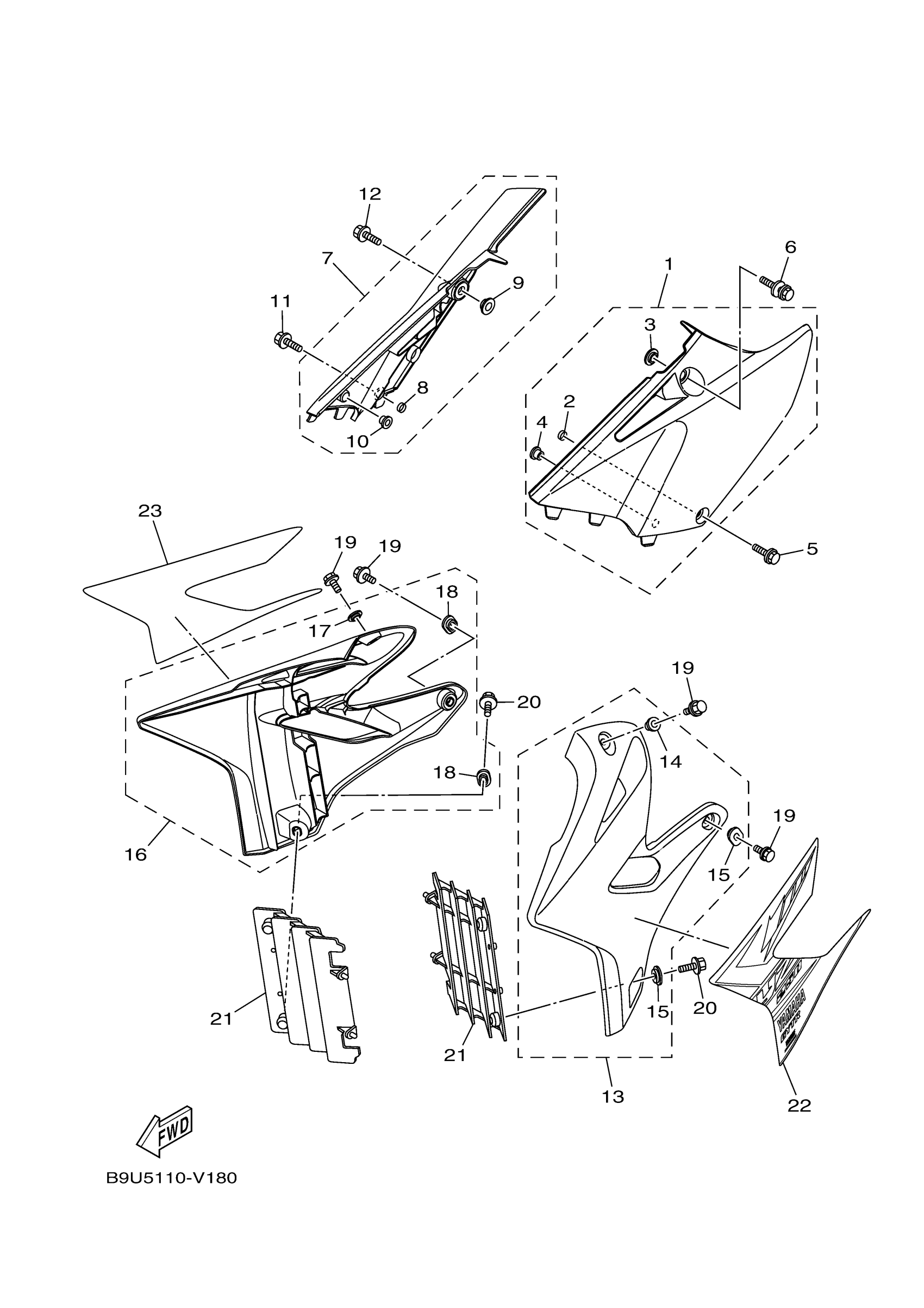 Yamaha YZ250L2 (YZ250) B9U5 2020 SIDE COVER Diagram