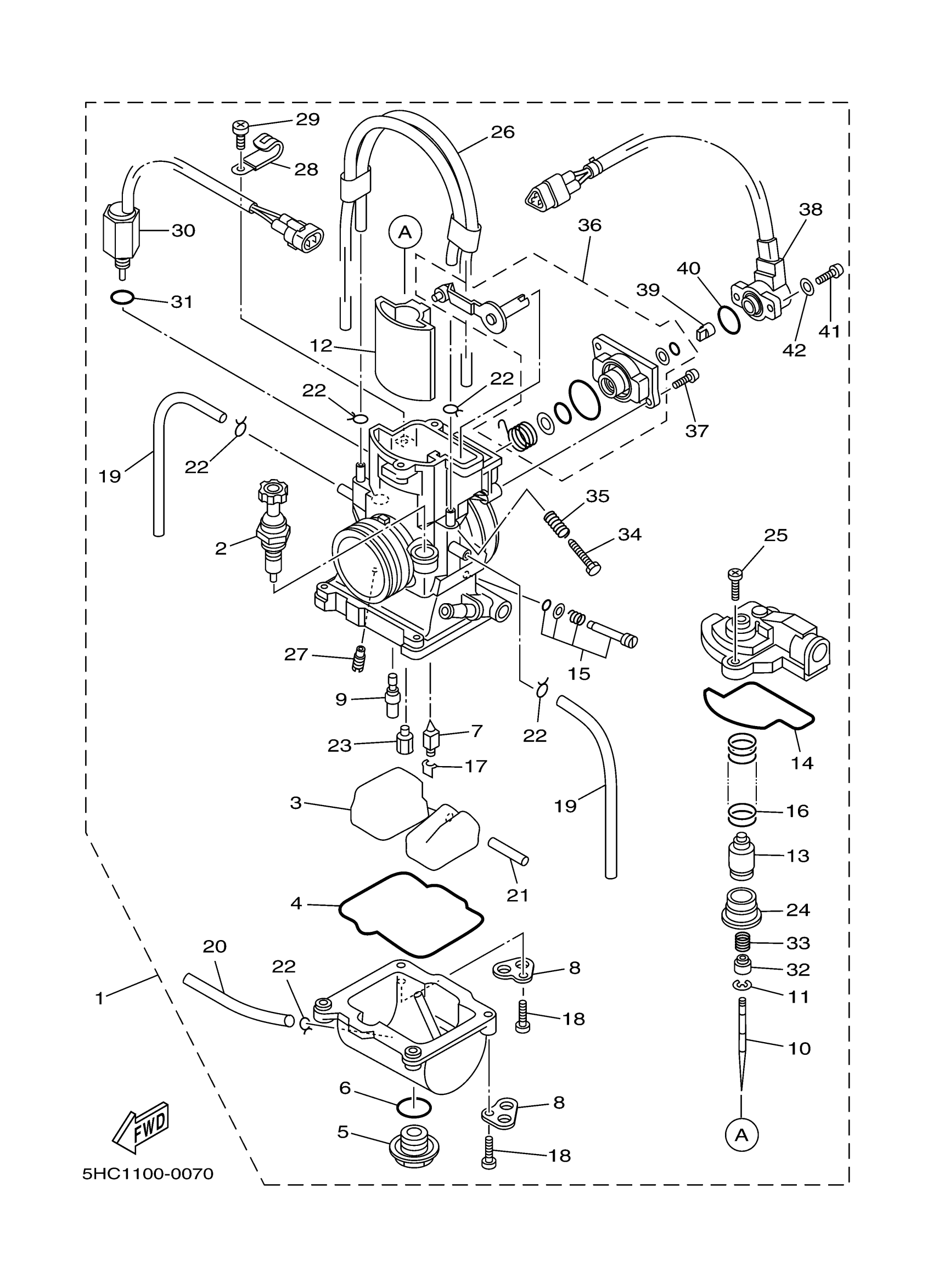 Yamaha YZ250M1 (YZ250) 5HC1 2000 CARBURETOR Diagram