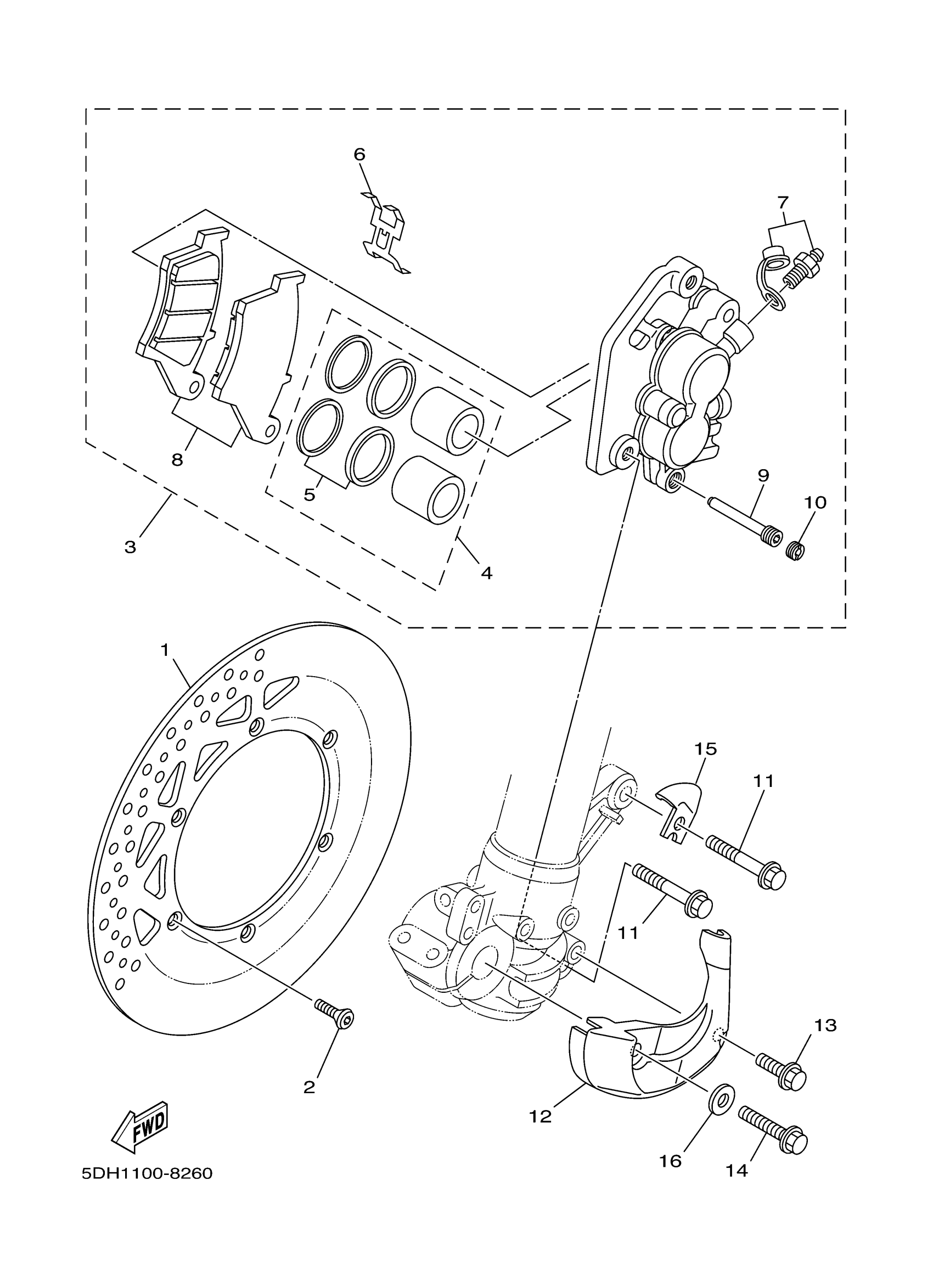 Yamaha YZ250M1 (YZ250) 5HC1 2000 FRONT BRAKE CALIPER Diagram