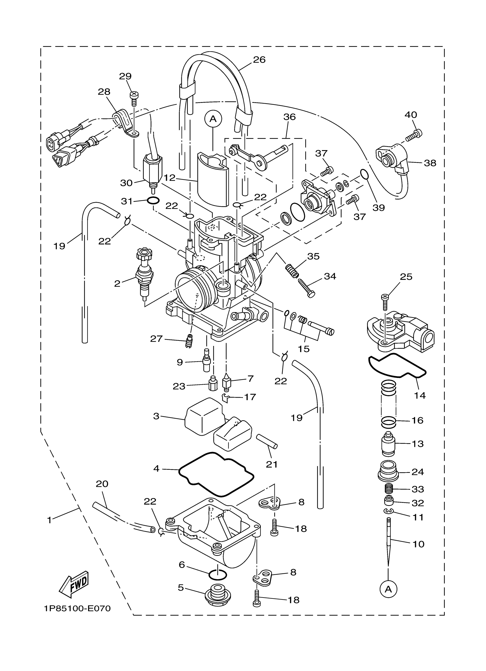 Yamaha YZ250M2 (YZ250) B9U9 2021 CARBURETOR Diagram
