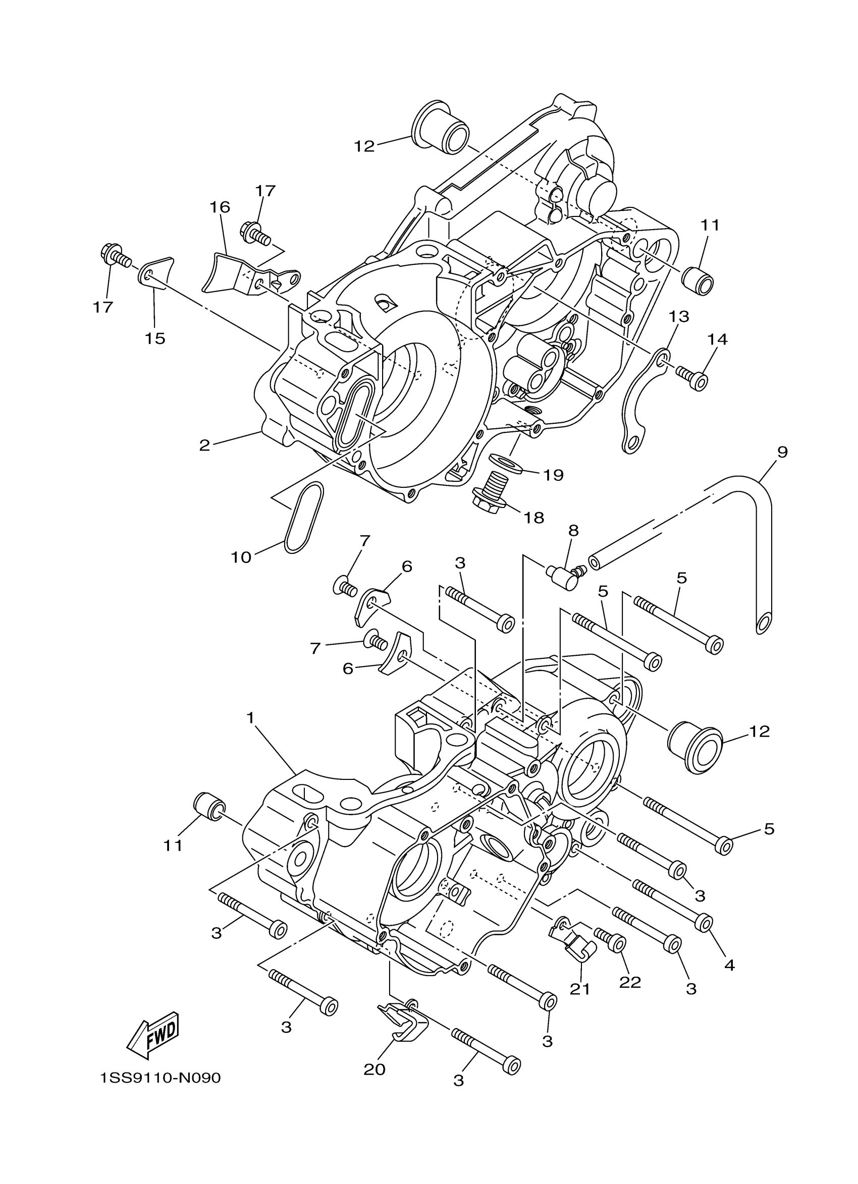 Yamaha YZ250M2 (YZ250) B9U9 2021 CRANKCASE Diagram
