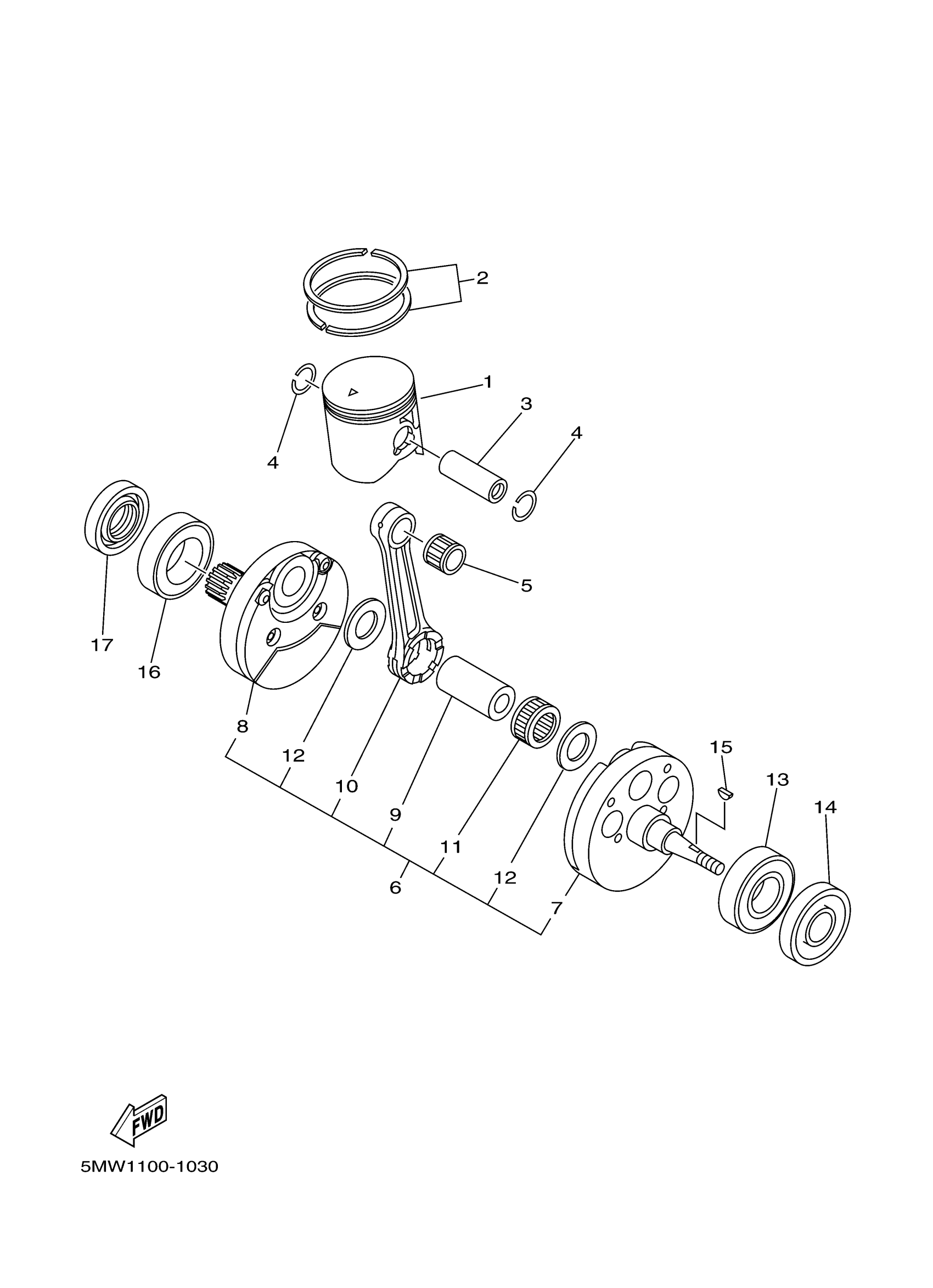 Yamaha YZ250N1 (YZ250) 5MW1 2001 CRANKSHAFT PISTON Diagram