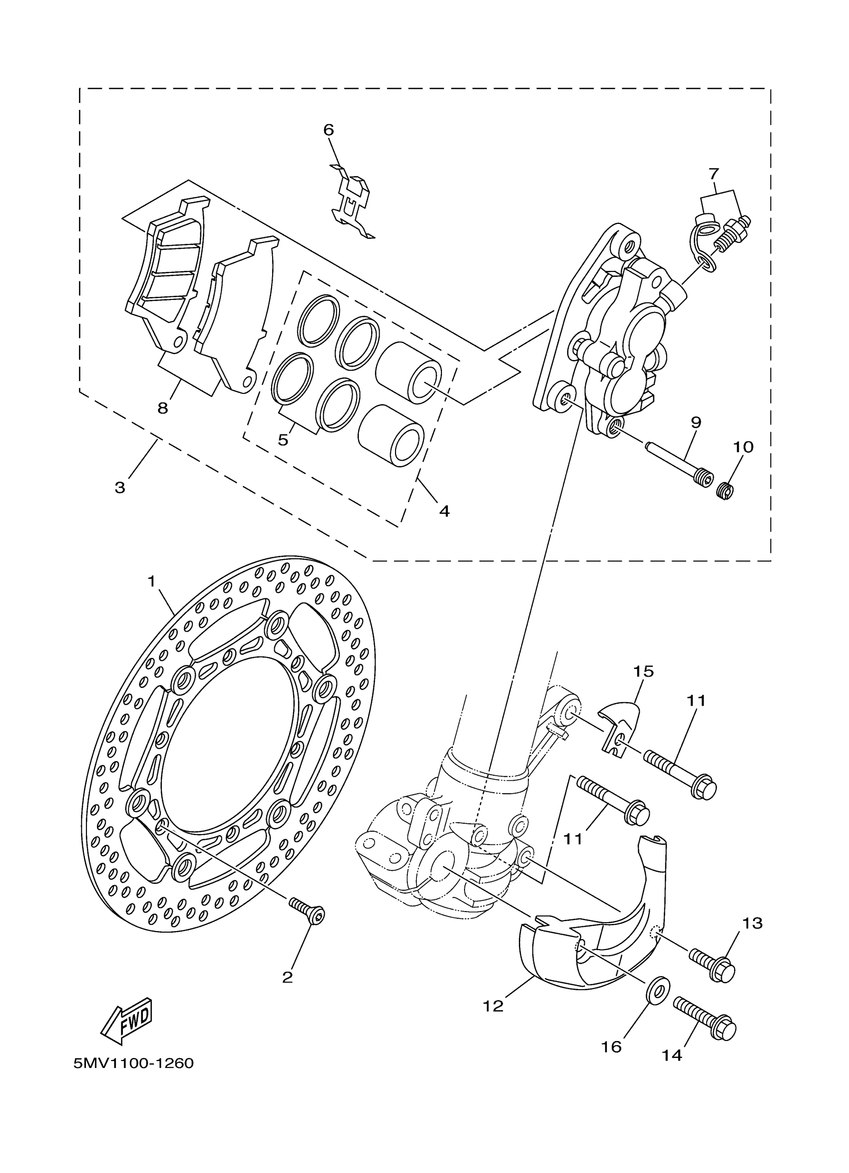 Yamaha YZ250N1 (YZ250) 5MW1 2001 FRONT BRAKE CALIPER Diagram