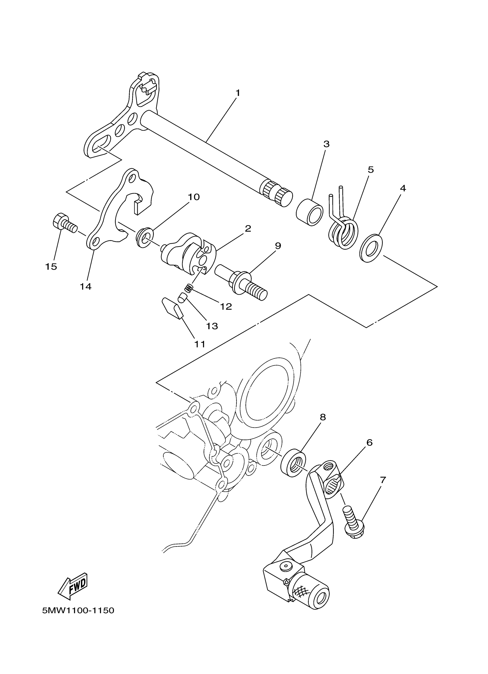 Yamaha YZ250N1 (YZ250) 5MW1 2001 SHIFT SHAFT Diagram