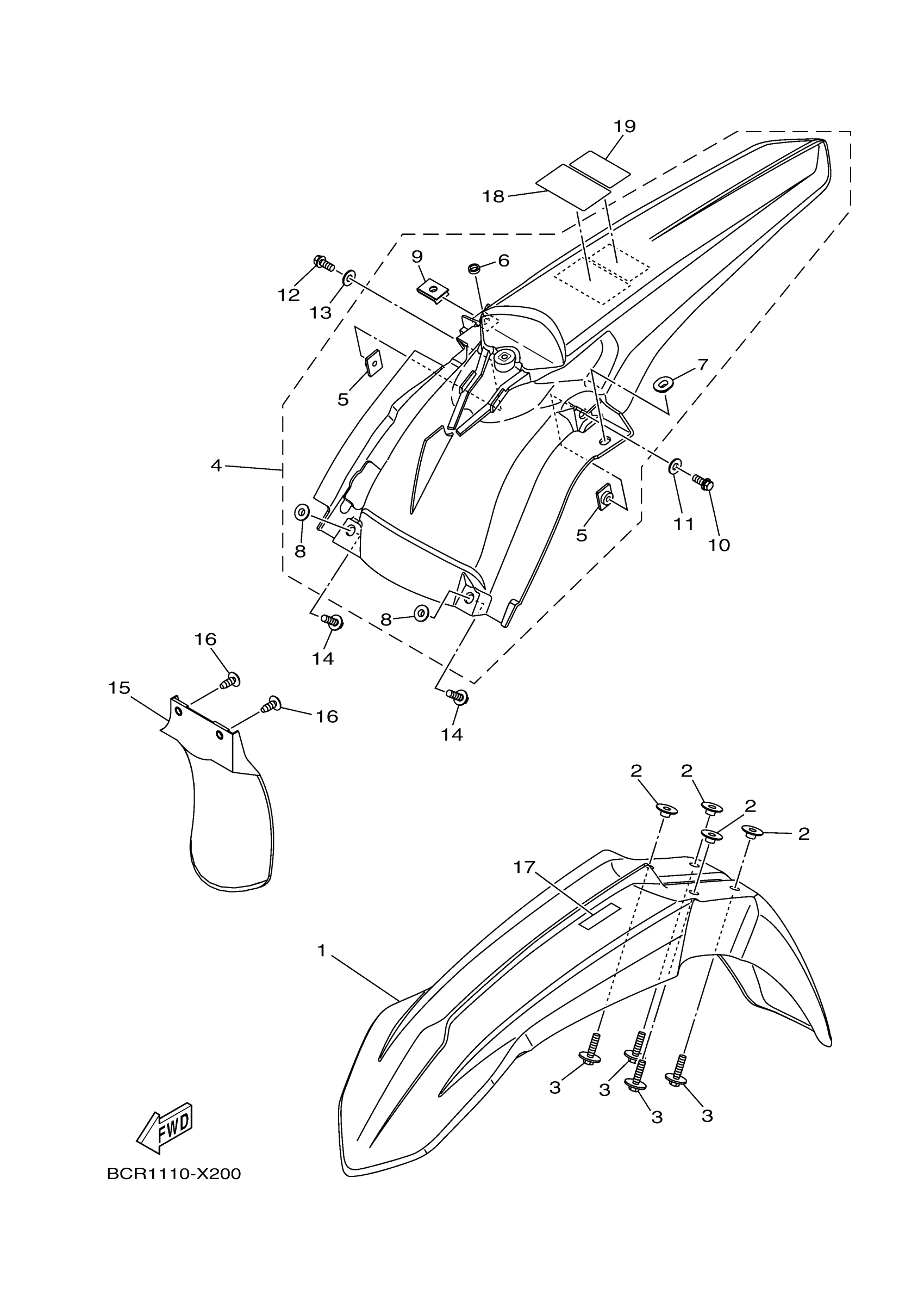 Yamaha YZ250N2L (YZ250) BCR1 2022 FENDER Diagram