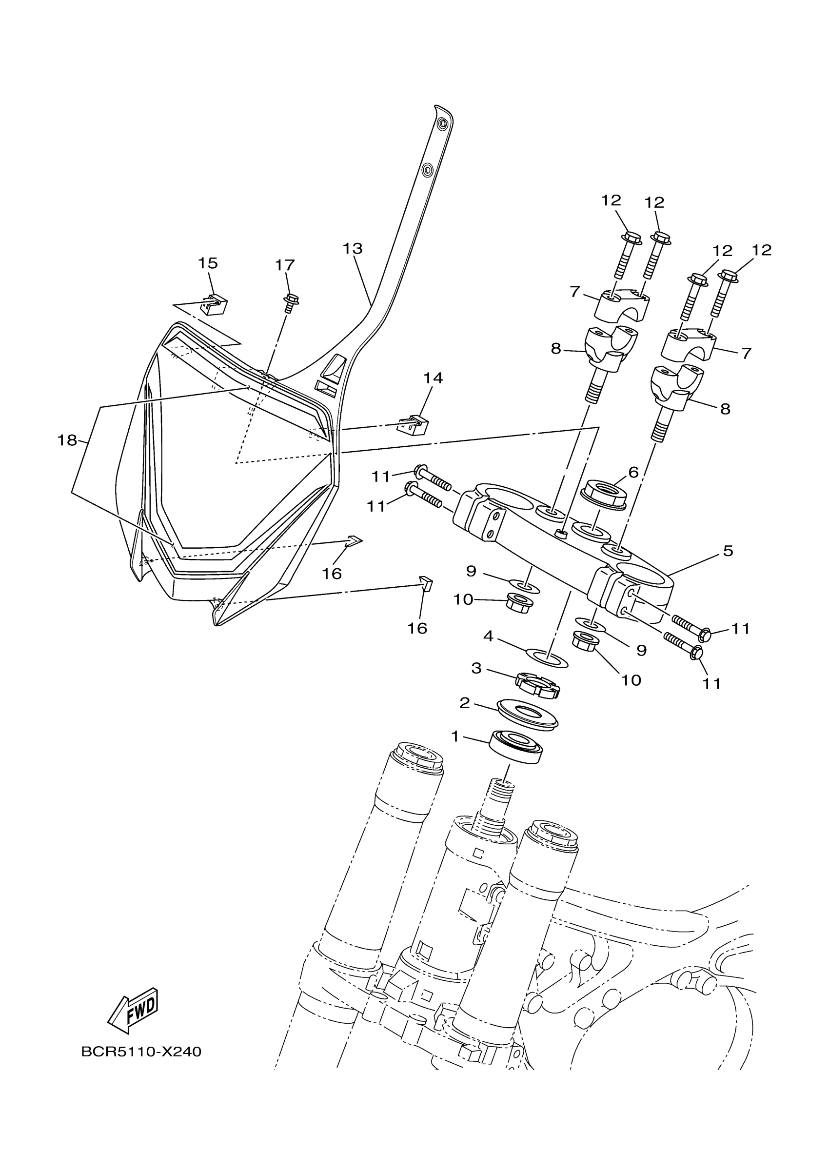 Yamaha YZ250N2ME (YZ250 MONSTER) BCR5 2022 STEERING Diagram