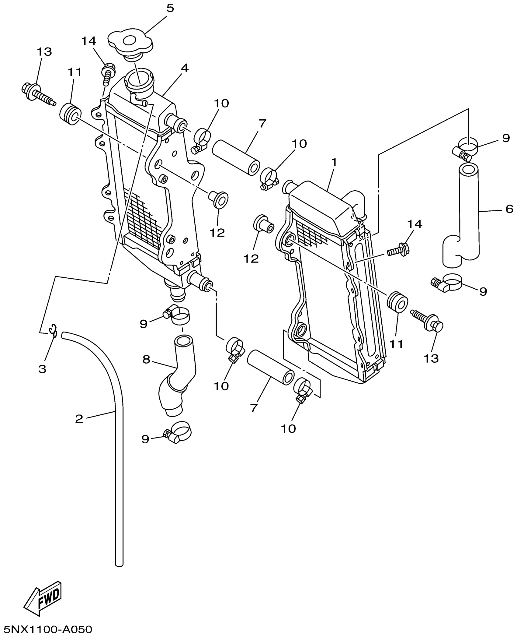Yamaha YZ250P (YZ250) 5NX1 2002 RADIATOR HOSE Diagram