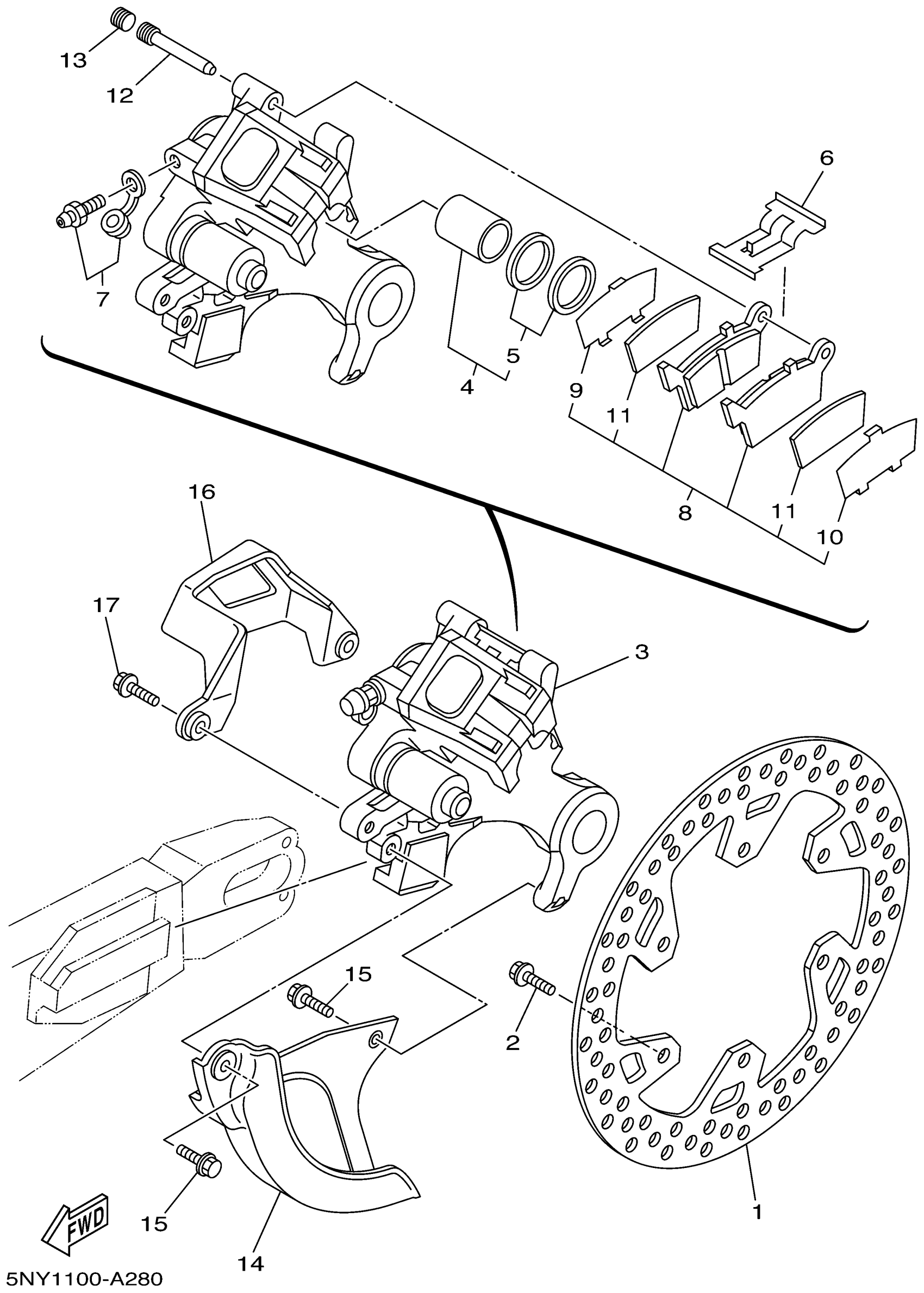 Yamaha YZ250P (YZ250) 5NX1 2002 REAR BRAKE CALIPER Diagram