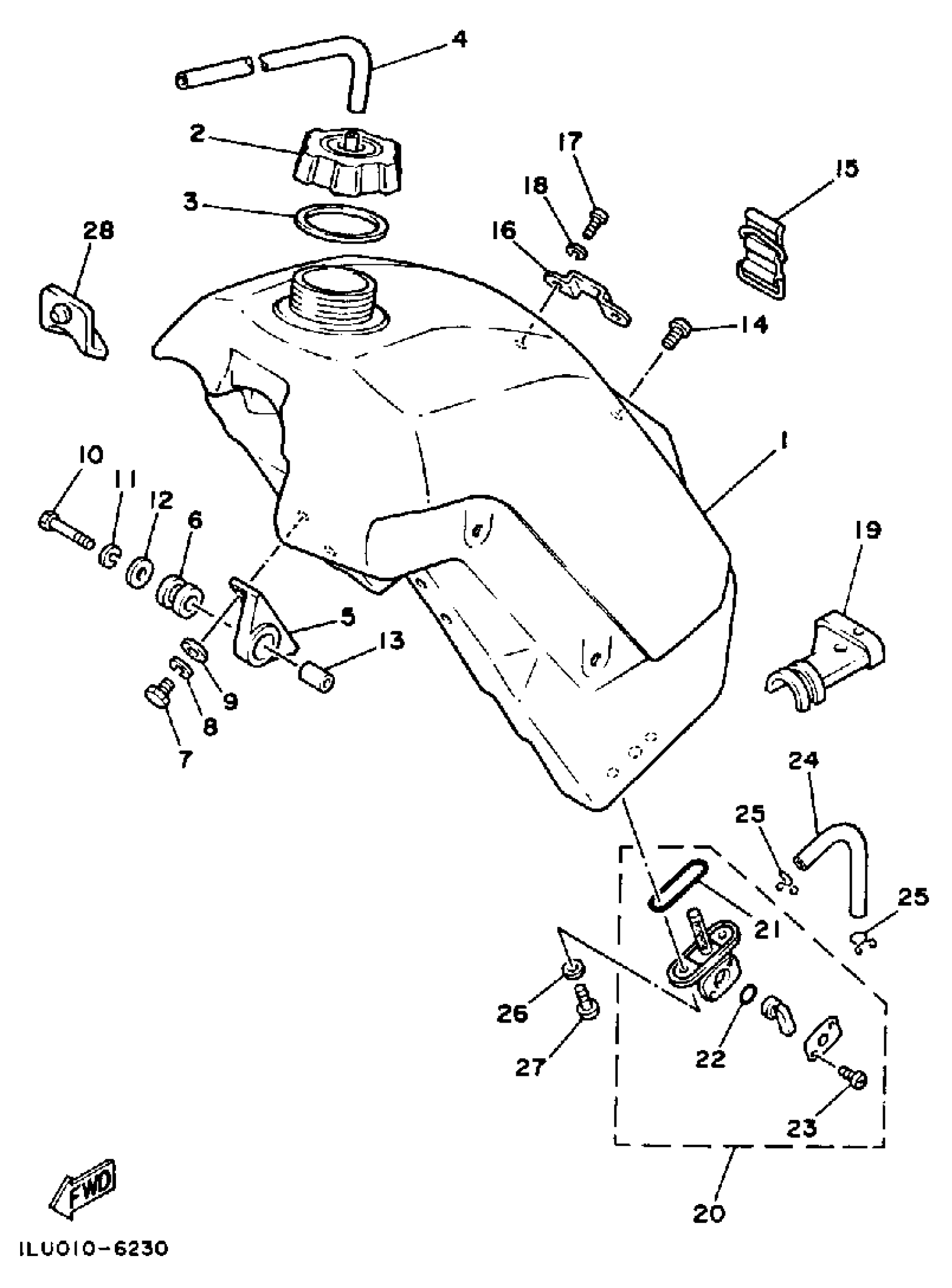 Yamaha YZ250S (YZ250) 1LU 1986 FUEL TANK Diagram