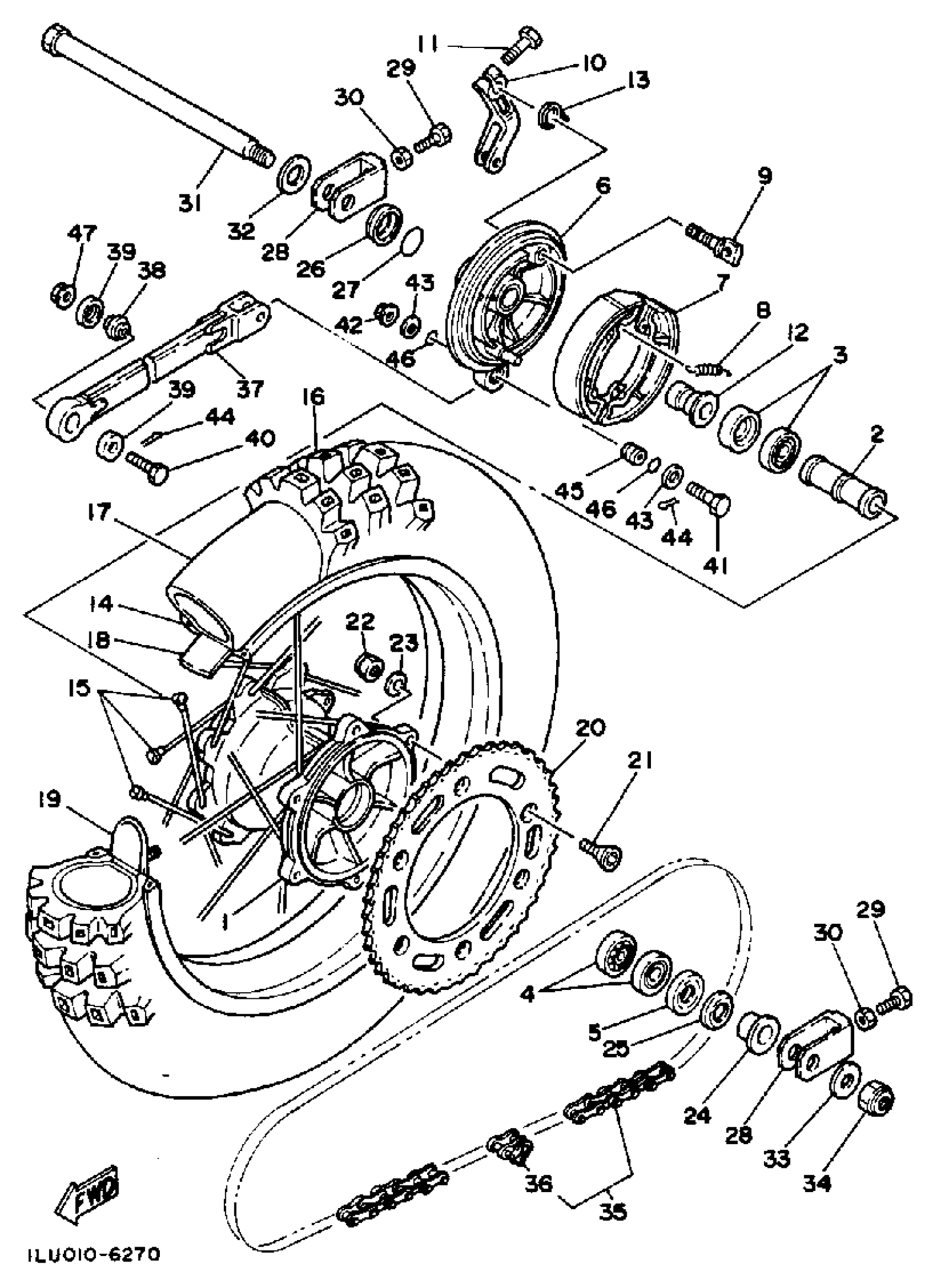 Yamaha YZ250S (YZ250) 1LU 1986 REAR WHEEL Diagram