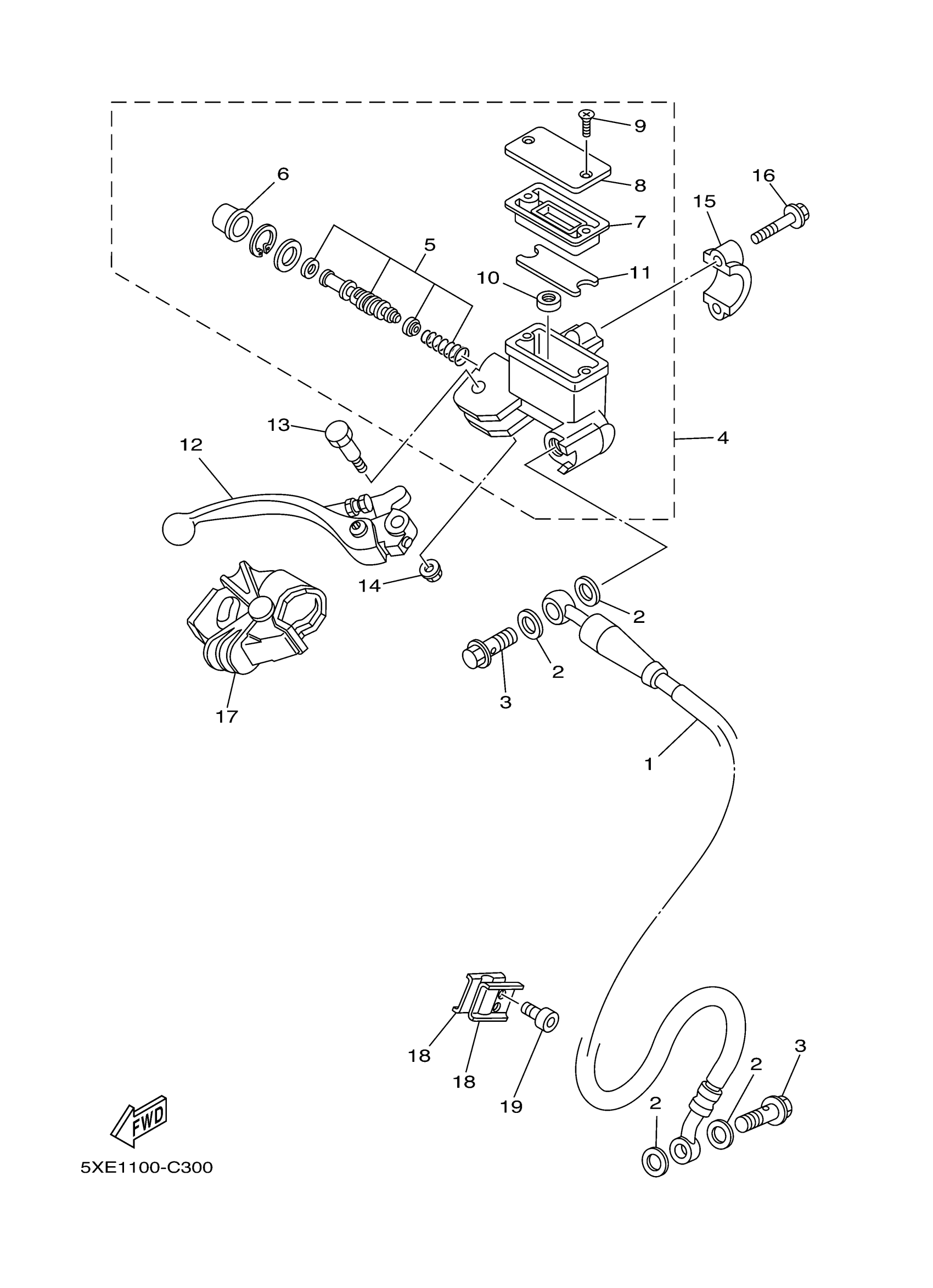 Yamaha YZ250S1 (YZ250) 5XF1 2004 FRONT MASTER CYLINDER Diagram