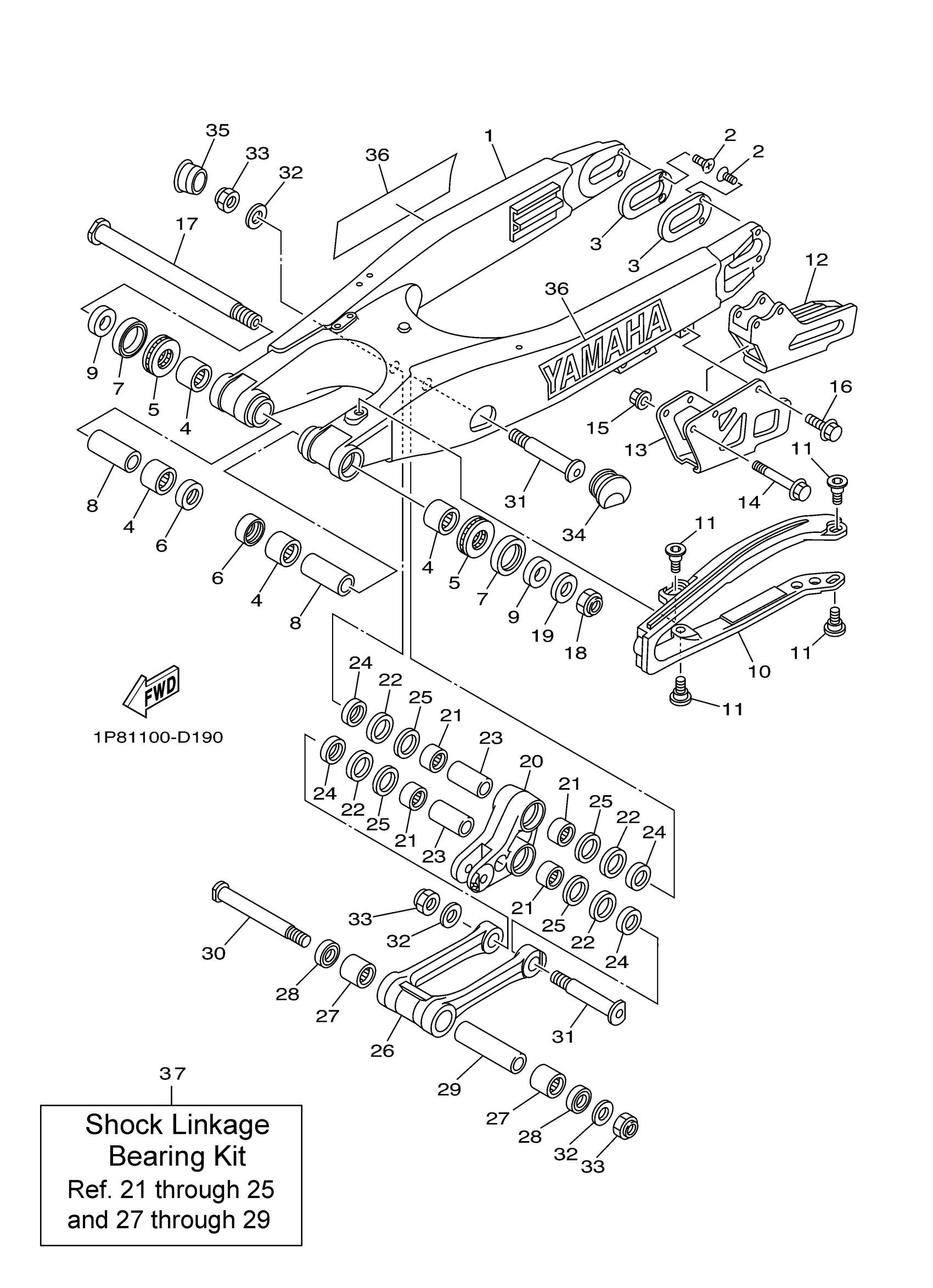 Yamaha YZ250T1 (YZ250) 1P81 2005 REAR ARM Diagram