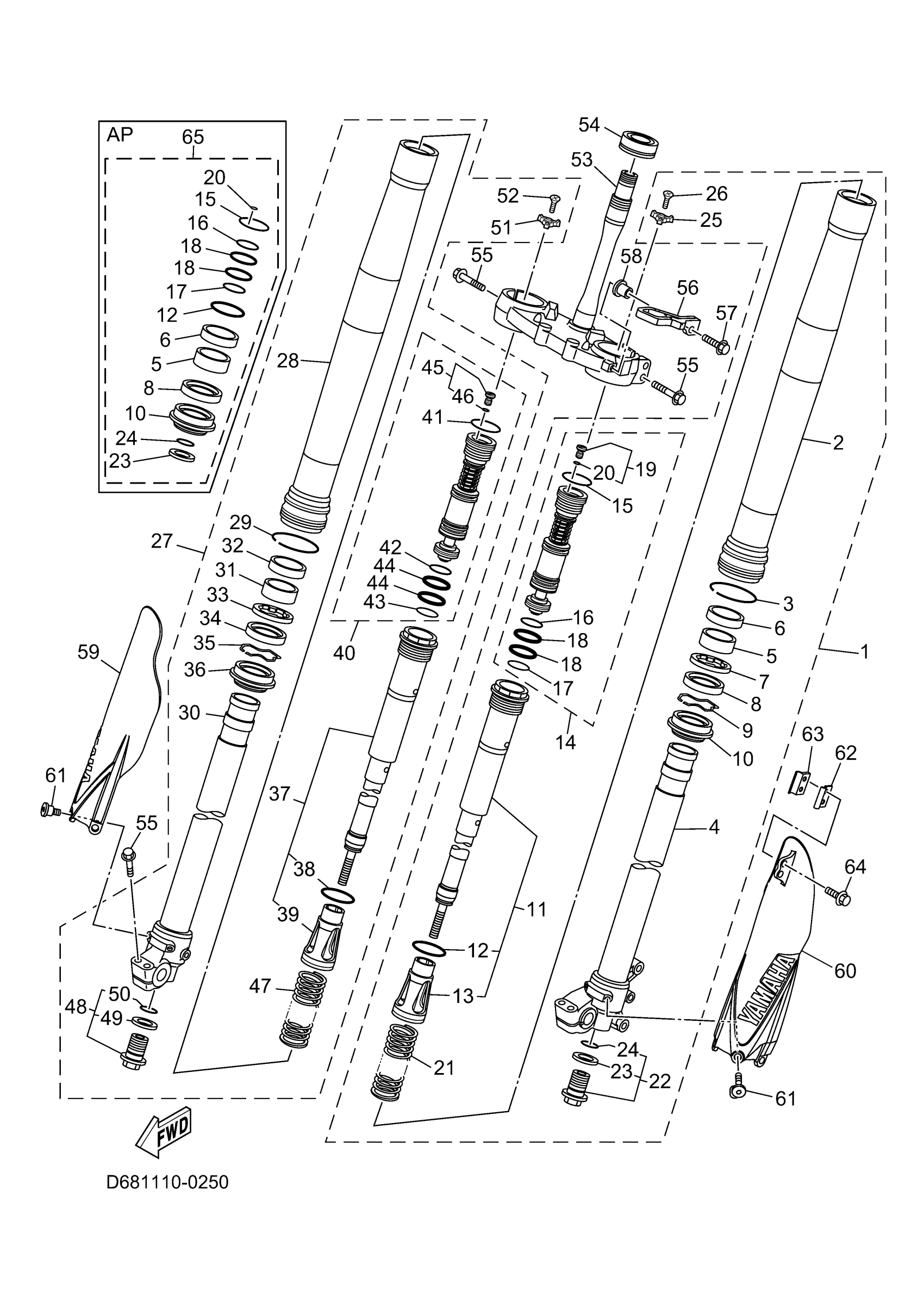 Yamaha YZ250TSE (YZ250 70TH ANNIVERSARY) D69C 2026 FRONT FORK Diagram