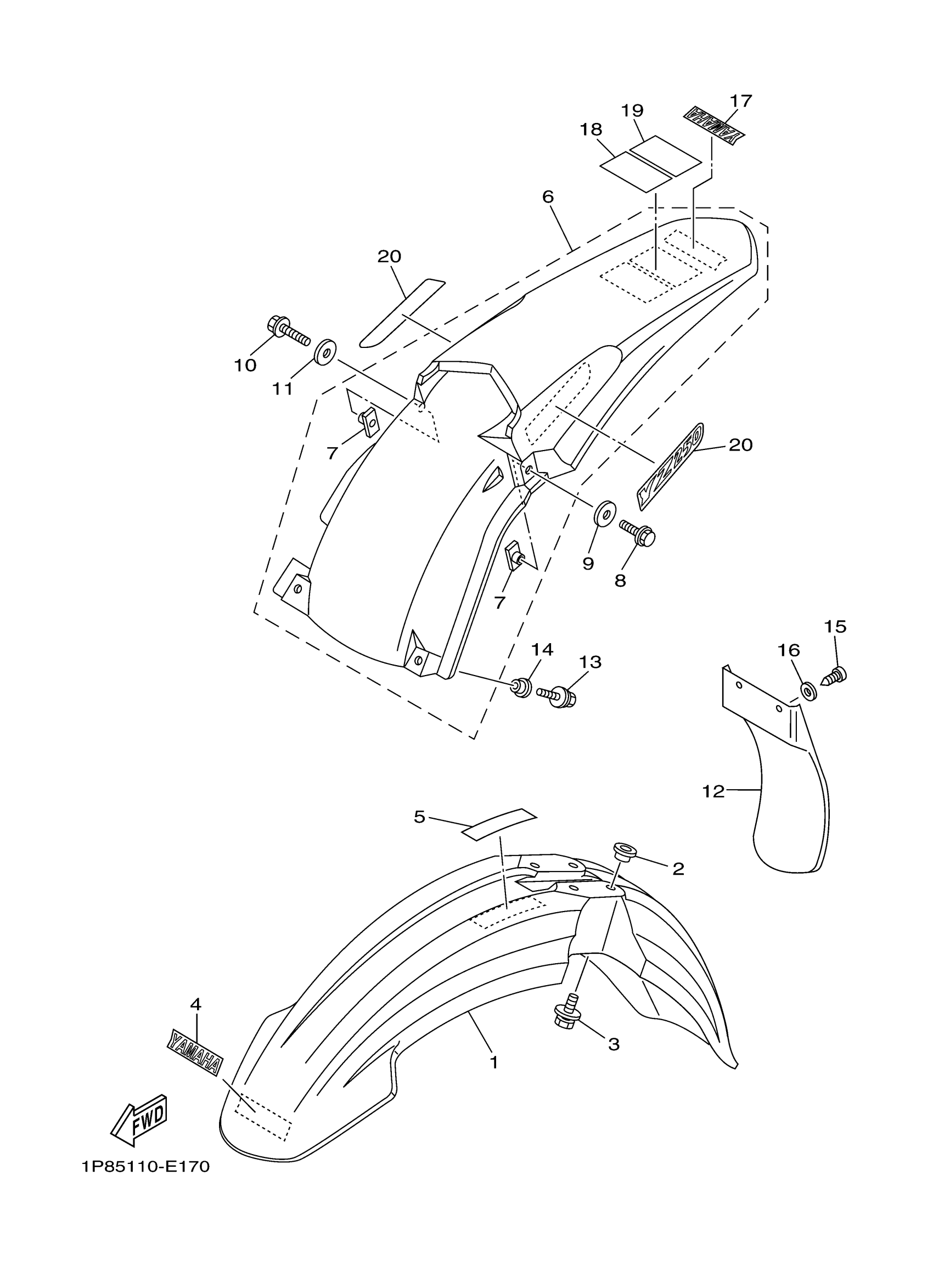 Yamaha YZ250V (YZ250) 1P85 2006 FENDER Diagram