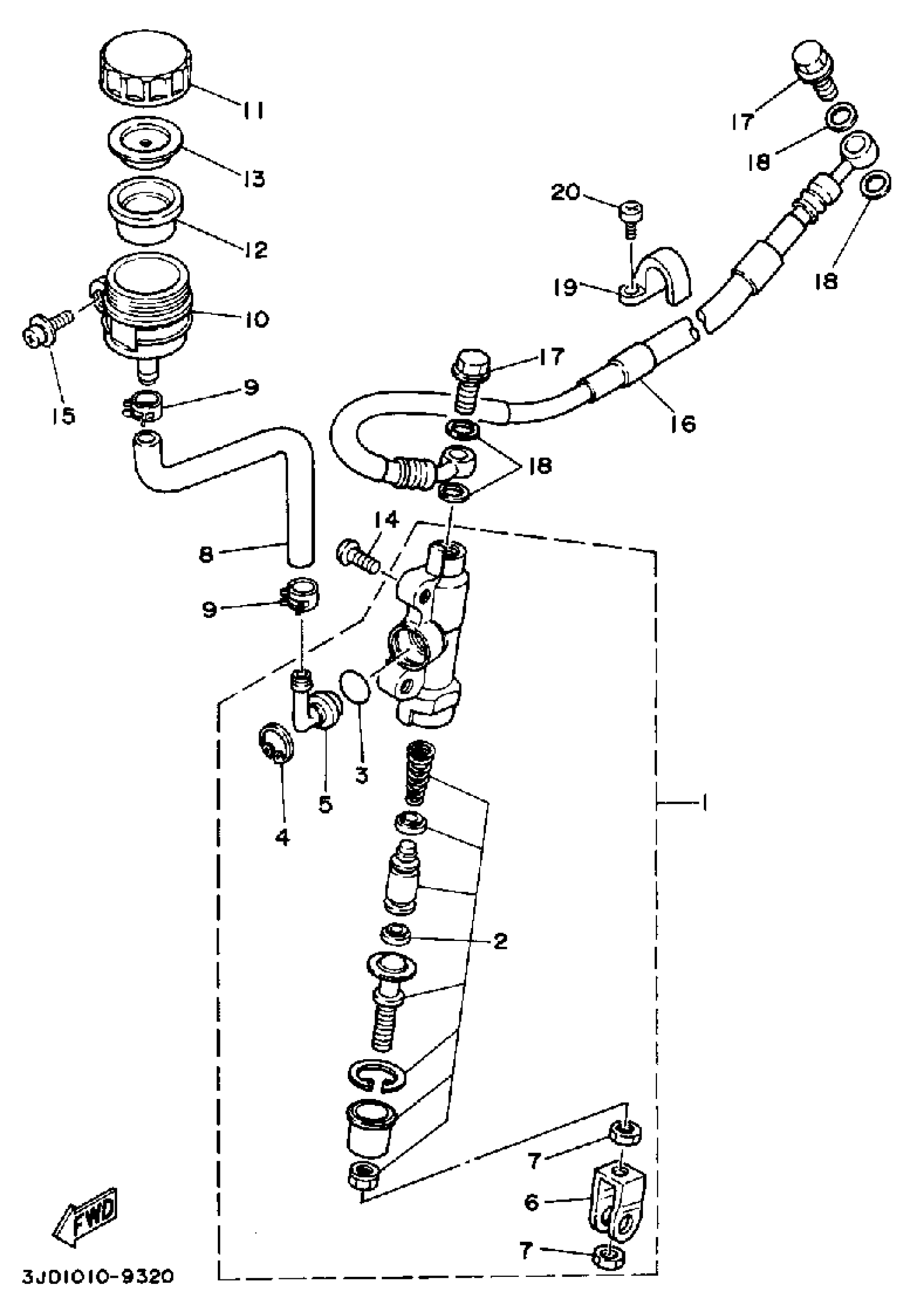 Yamaha YZ250W (YZ250W) 1989 REAR MASTER CYLINDER Diagram