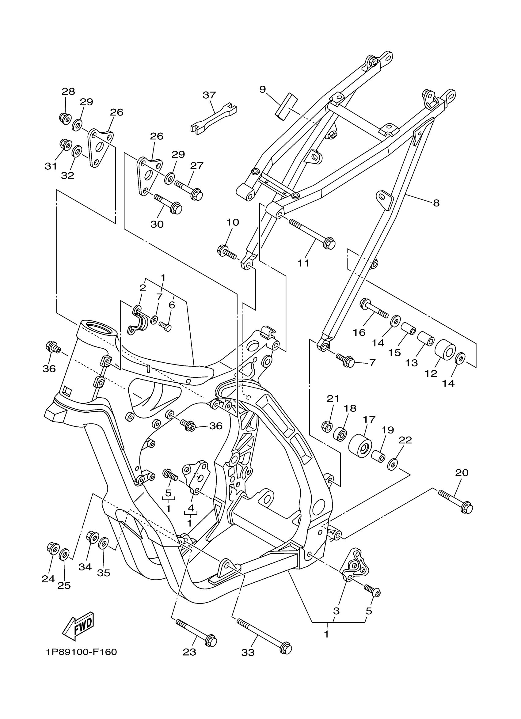 Yamaha YZ250W1 (YZ250) 1P89 2007 FRAME Diagram