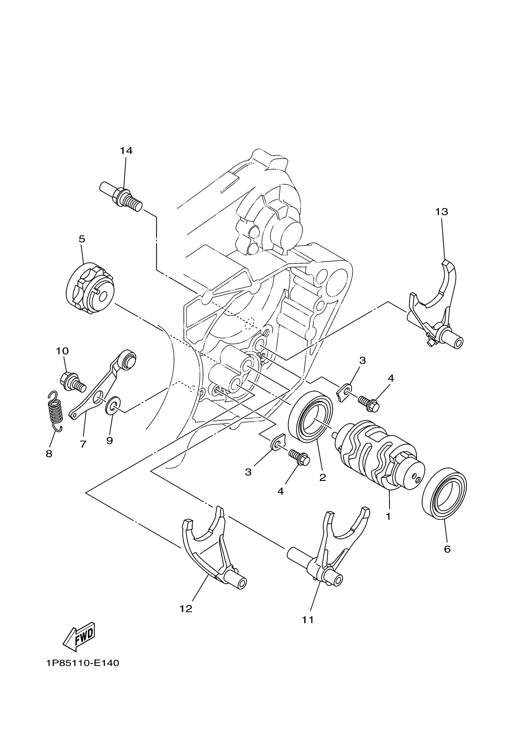 Yamaha YZ250W1 (YZ250) 1P89 2007 SHIFT CAM FORK Diagram