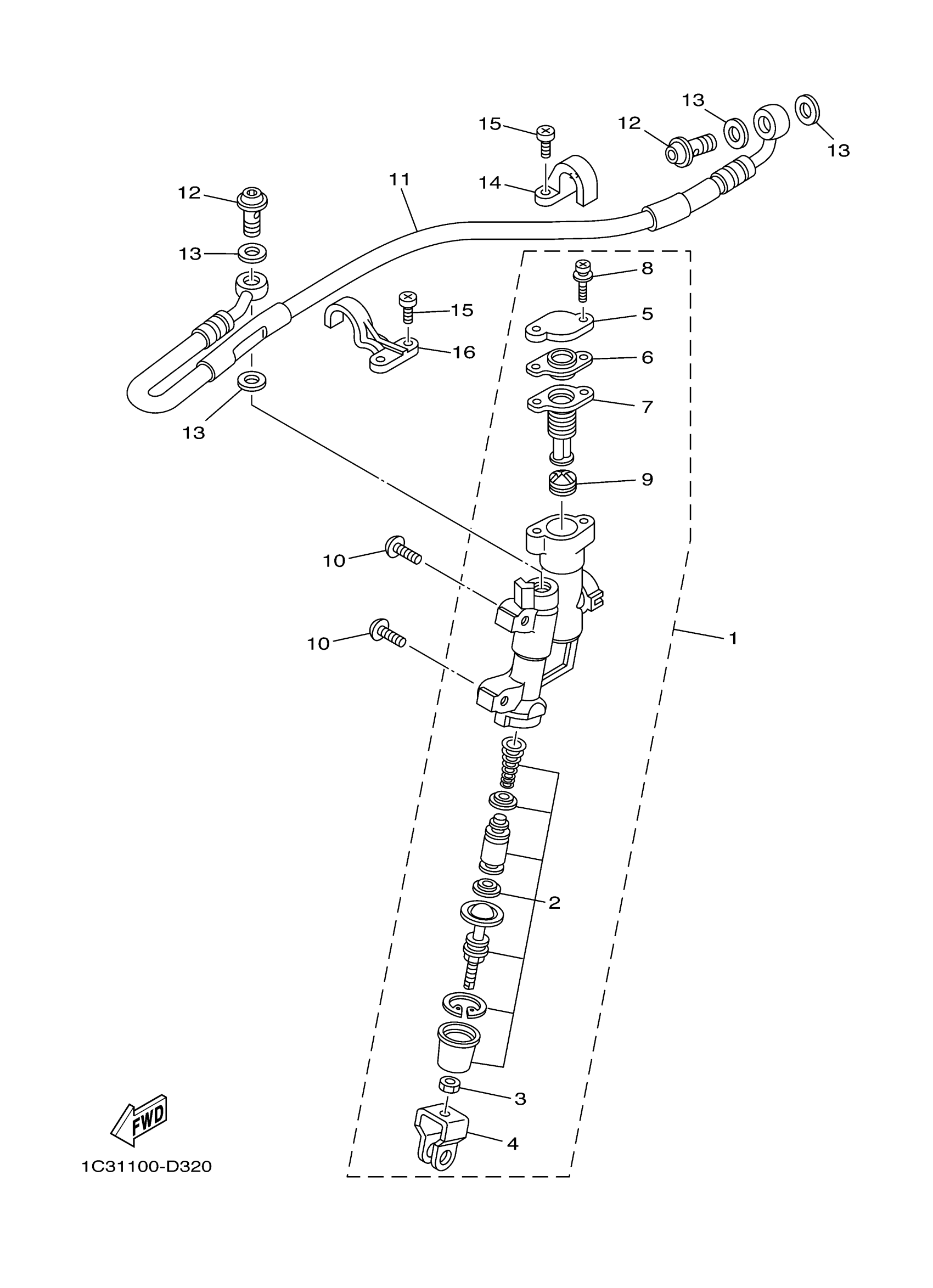Yamaha YZ250X (YZ250) 1P8D 2008 REAR MASTER CYLINDER Diagram