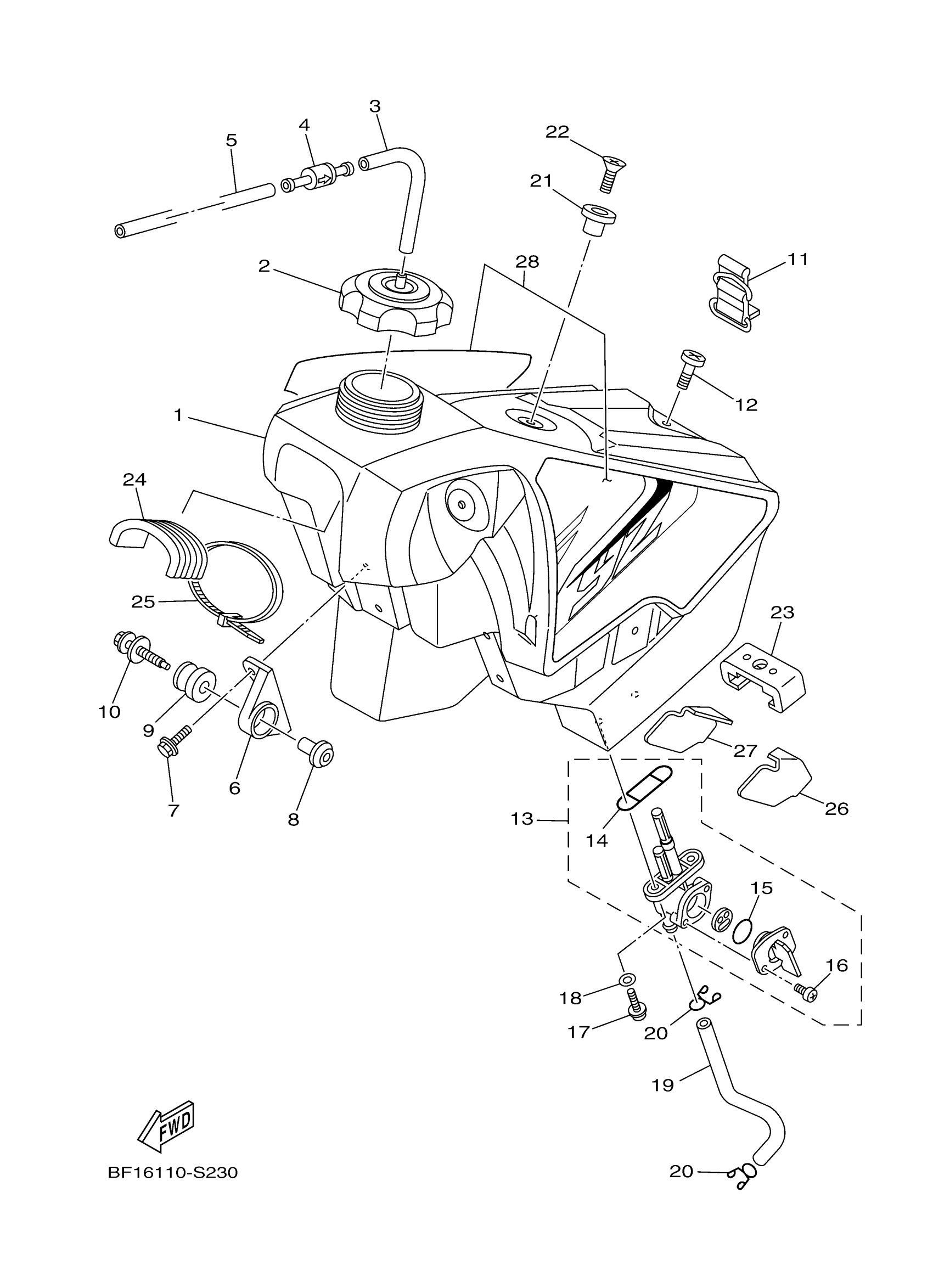 Yamaha YZ250XH (YZ250X) BF16 2017 FUEL TANK Diagram