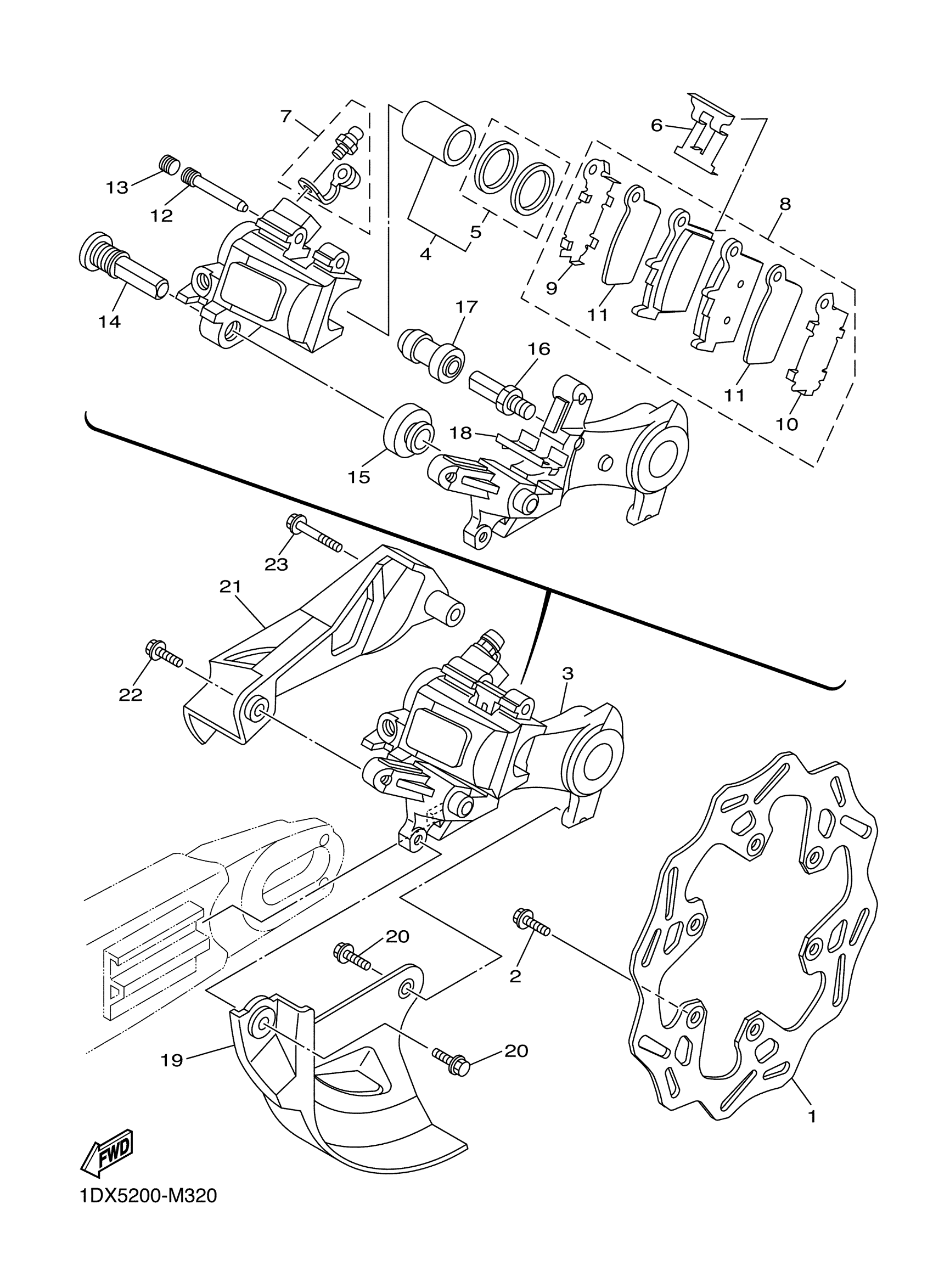 Yamaha YZ250XJ (YZ250X) BF1A 2018 REAR BRAKE CALIPER Diagram