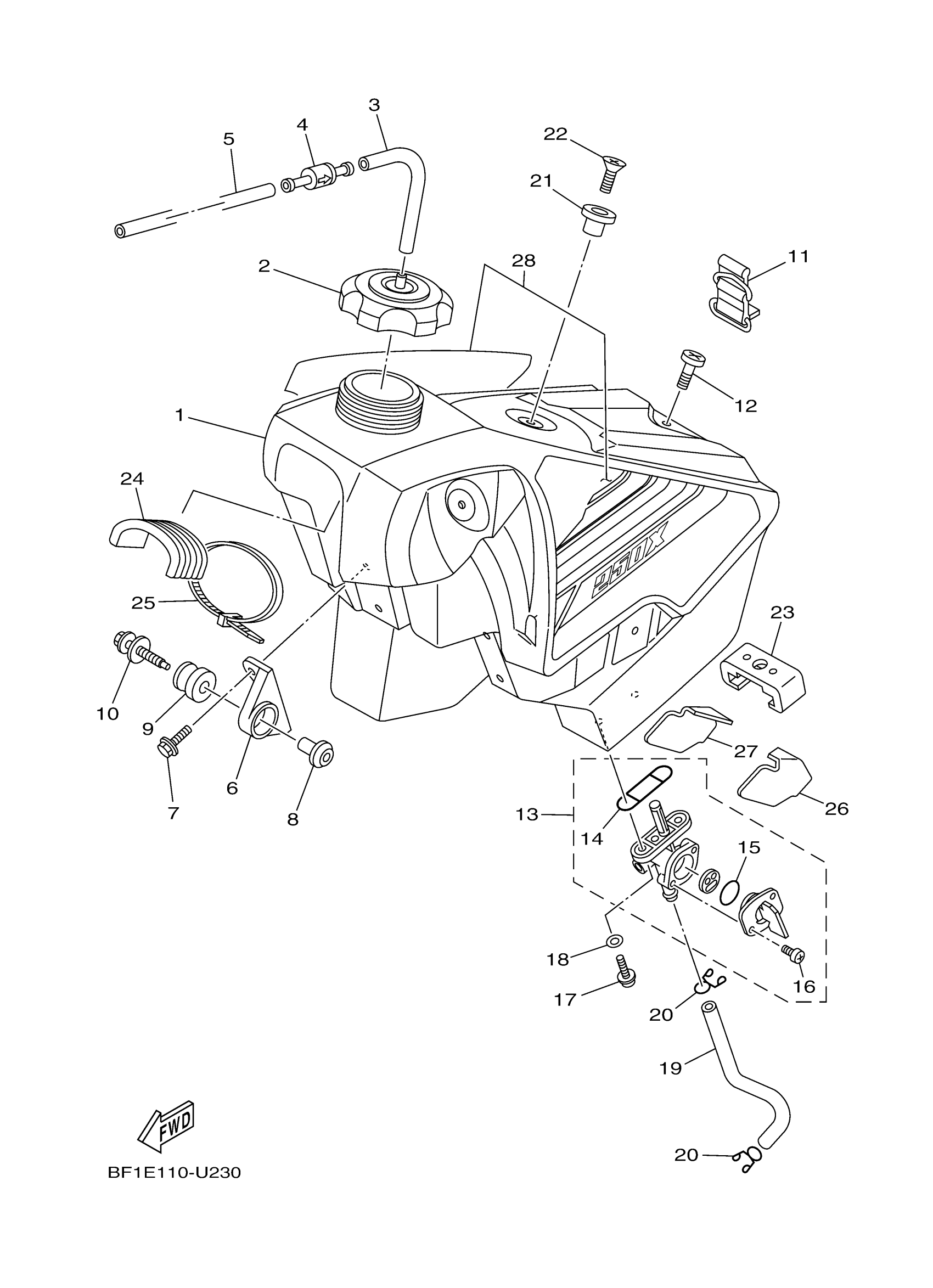 Yamaha YZ250XK (YZ250X) BF1E 2019 FUEL TANK Diagram