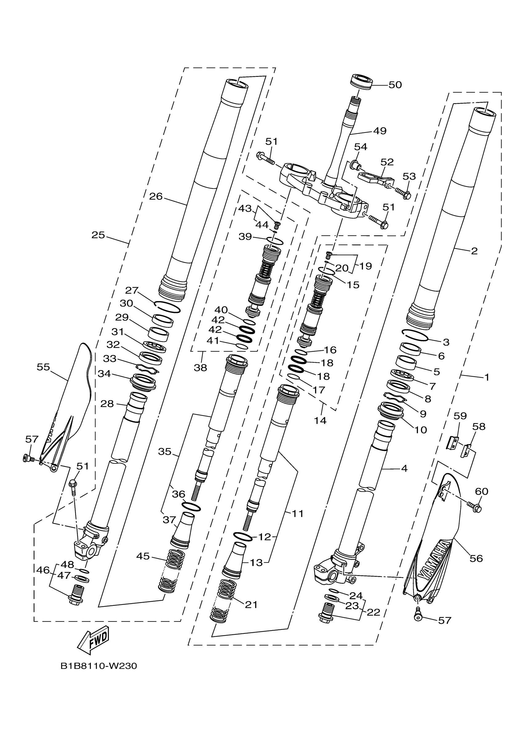 Yamaha YZ250XM (YZ250X) BF1M 2021 FRONT FORK Diagram