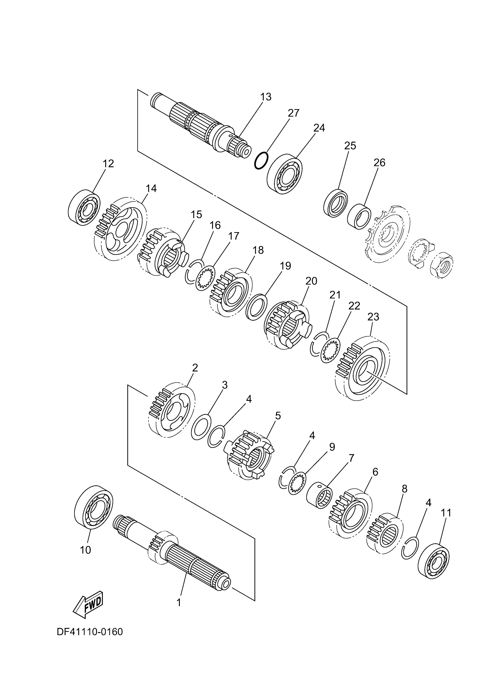 Yamaha YZ250XT (YZ250X) DF45 2026 TRANSMISSION Diagram