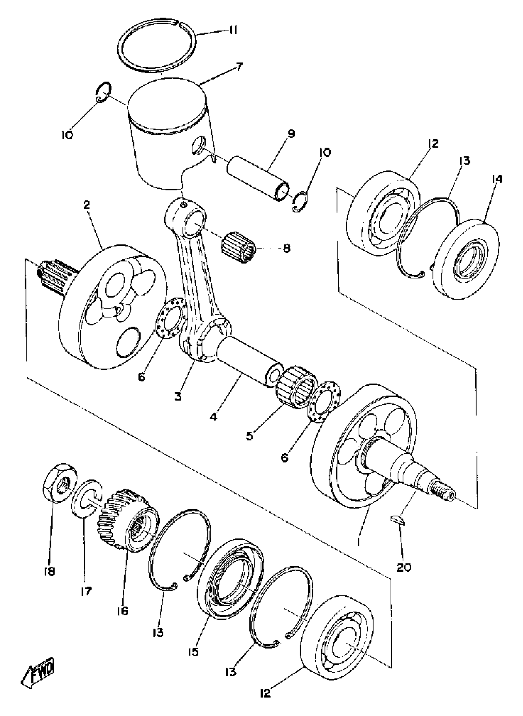Yamaha YZ360A (YZ250A_360A) 1974 CRANK PISTON Diagram