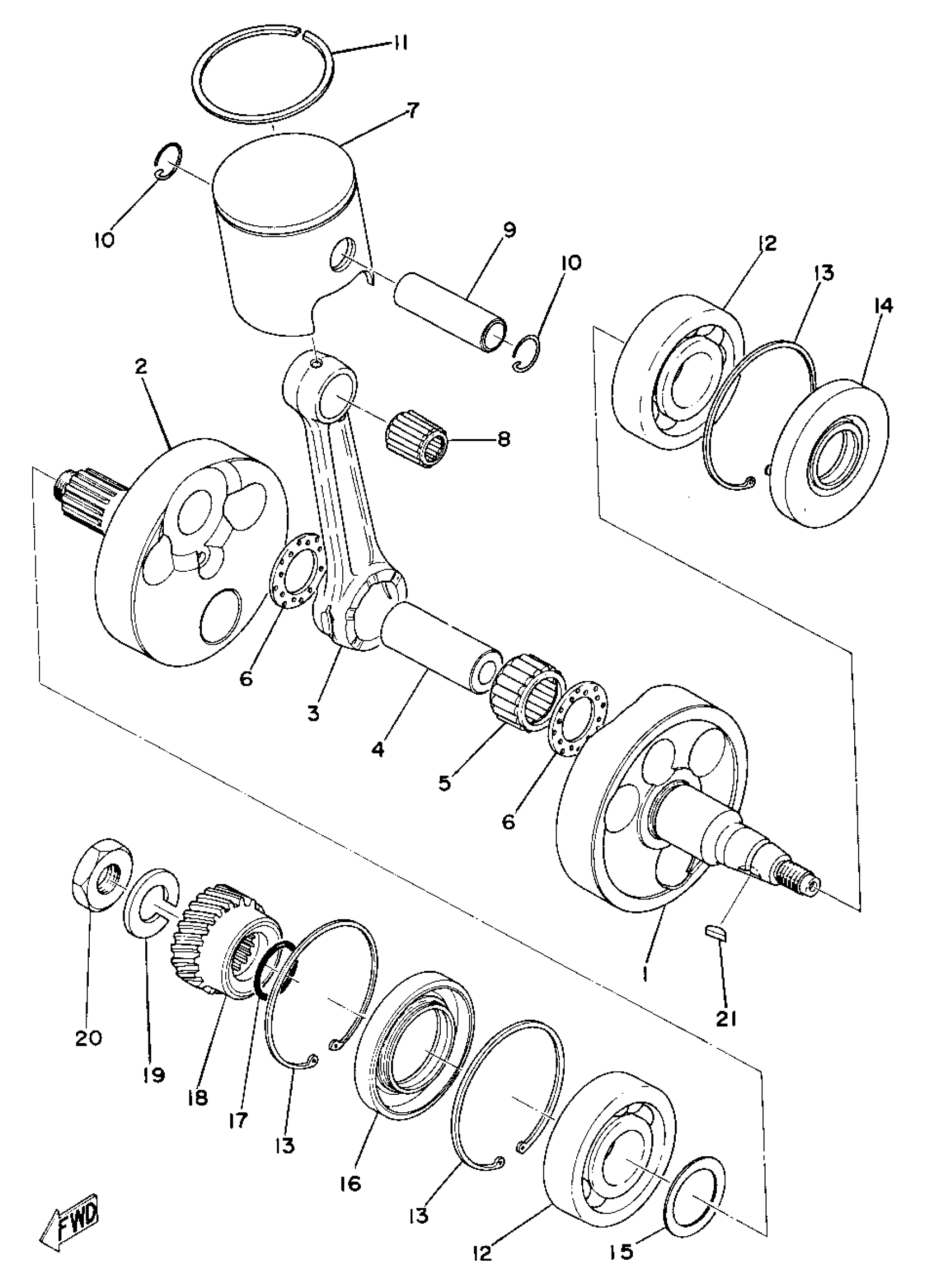 Yamaha YZ360B (YZ250B_360B) 1975 CRANK - PISTON Diagram
