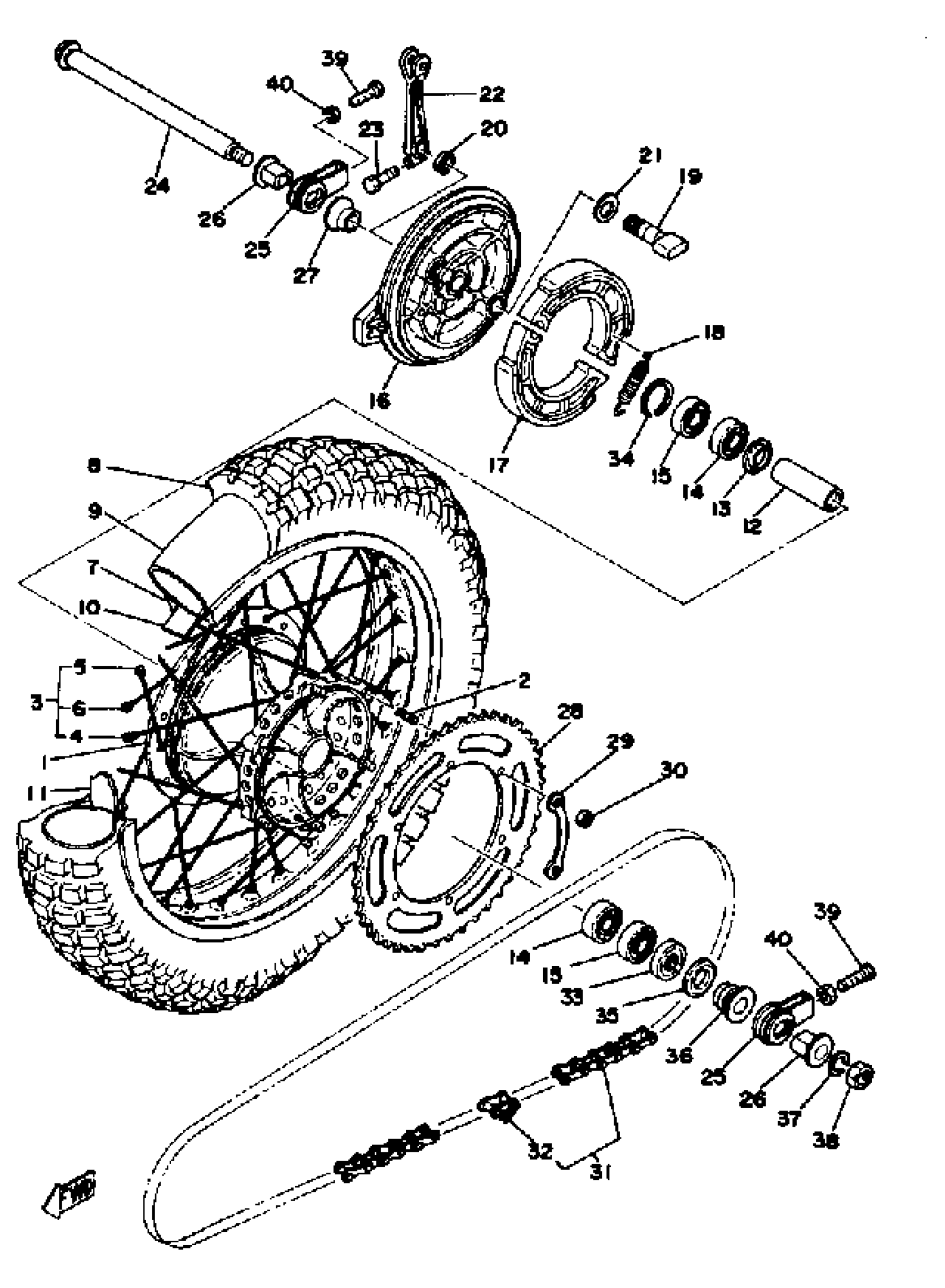 Yamaha YZ400C (YZ400C_D_E) 1976 REAR WHEEL YZ400D E Diagram