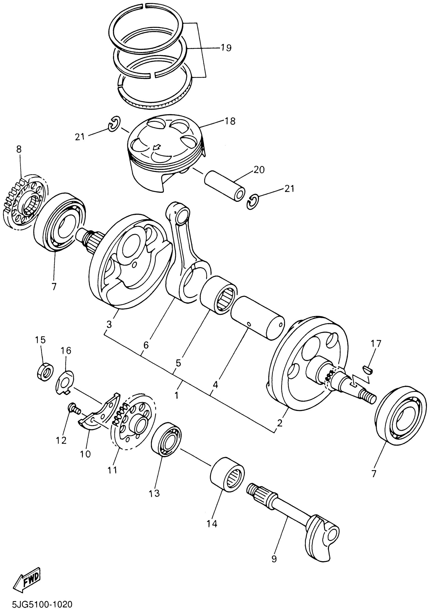 Yamaha YZ426FN (YZ426) 5JG5 2001 CRANKSHAFT PISTON Diagram
