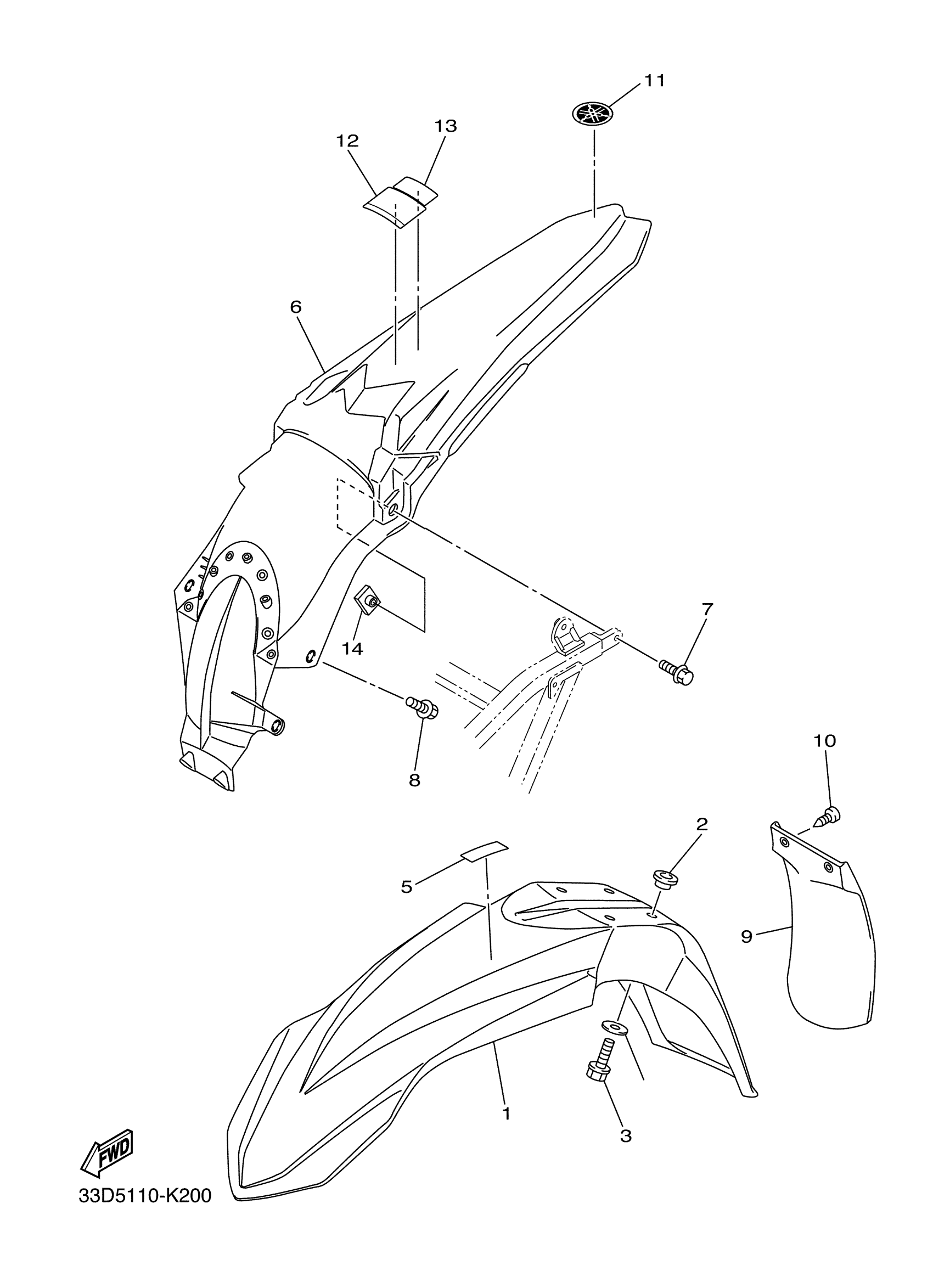 Yamaha YZ450FAL (YZ450F) 33D50 2011 FENDER Diagram