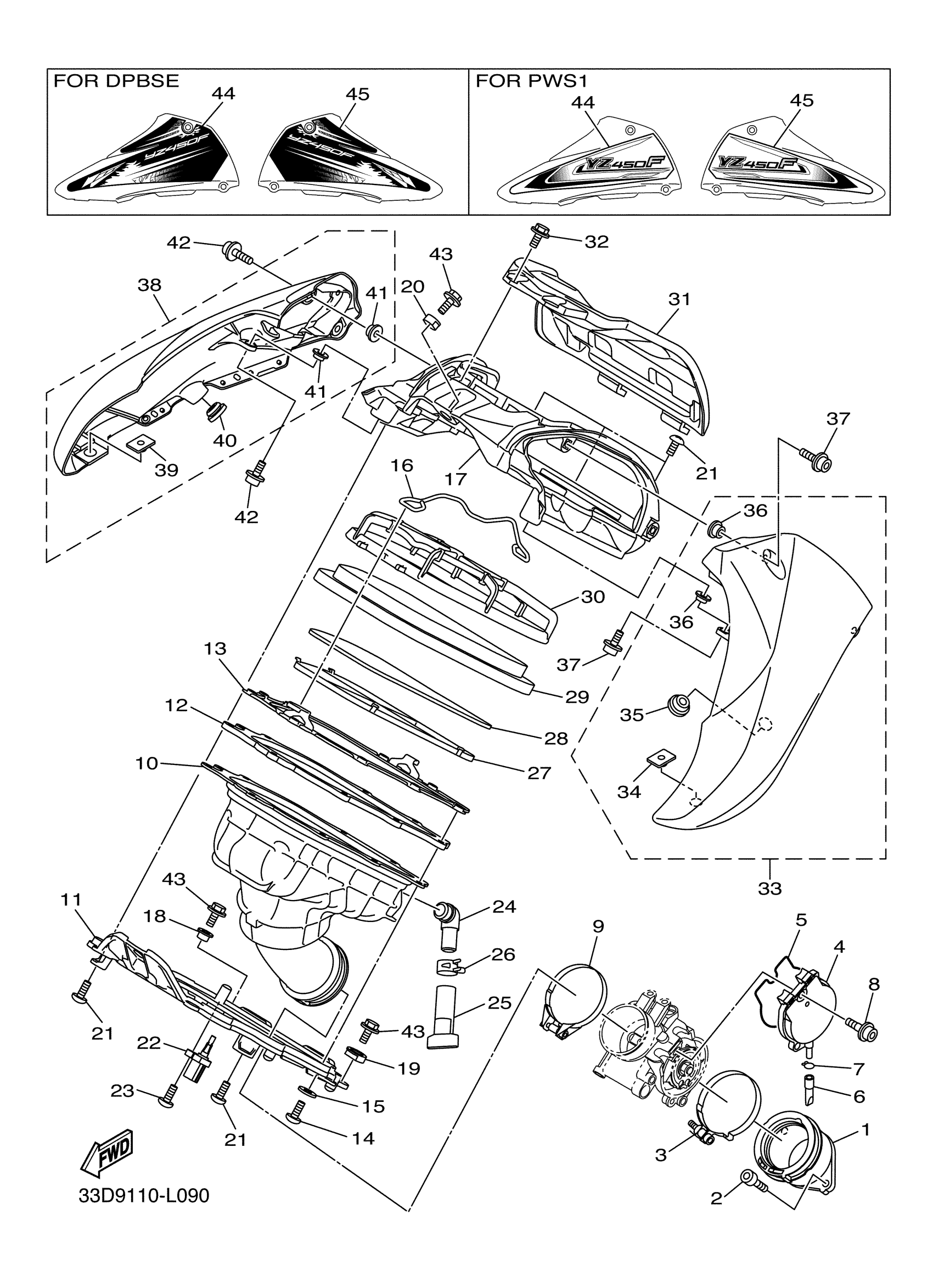 Yamaha YZ450FBW (YZ450FB) 33D90 2012 INTAKE Diagram