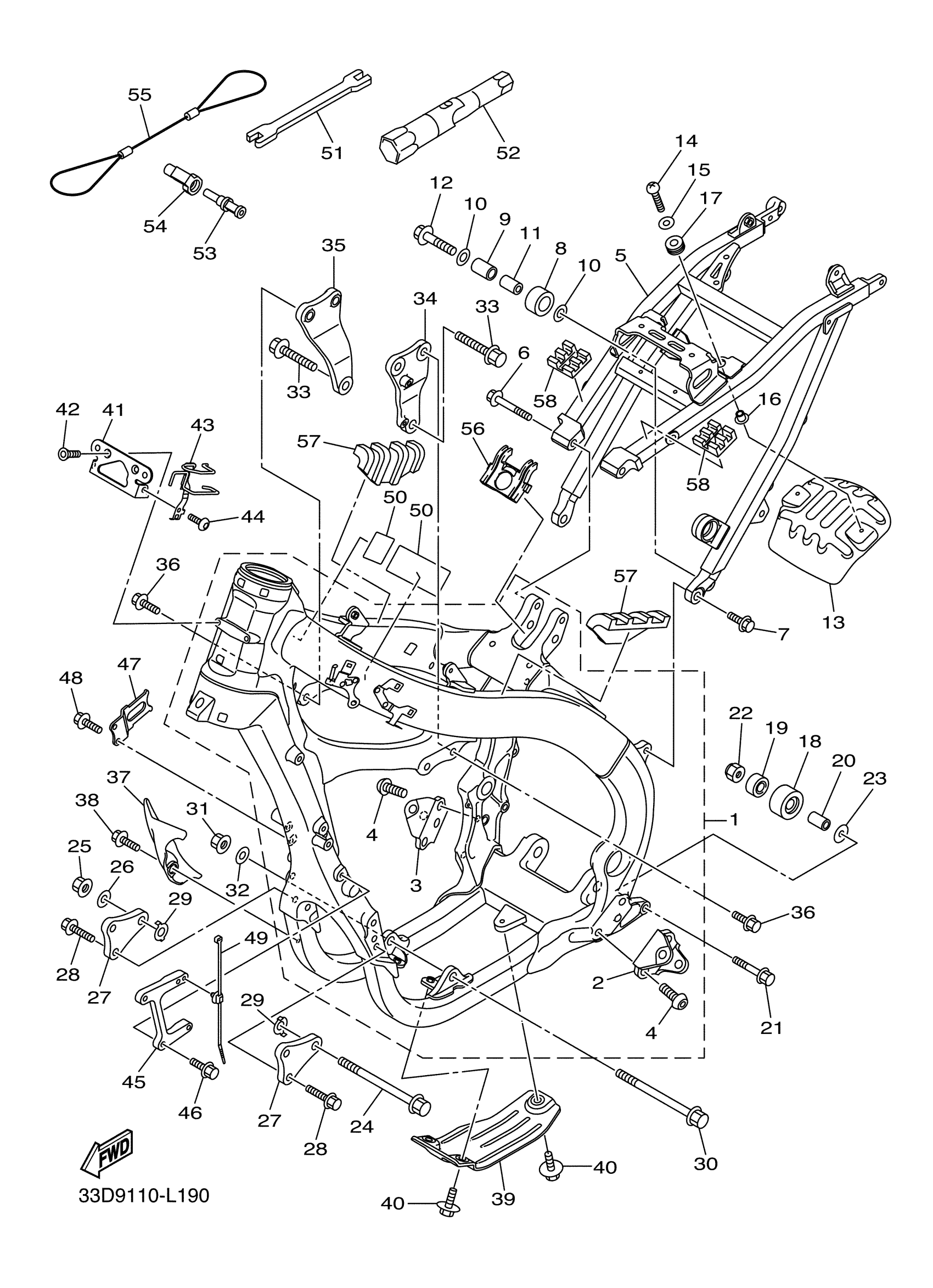 Yamaha YZ450FDW (YZ450F) 33DD0 2013 FRAME Diagram