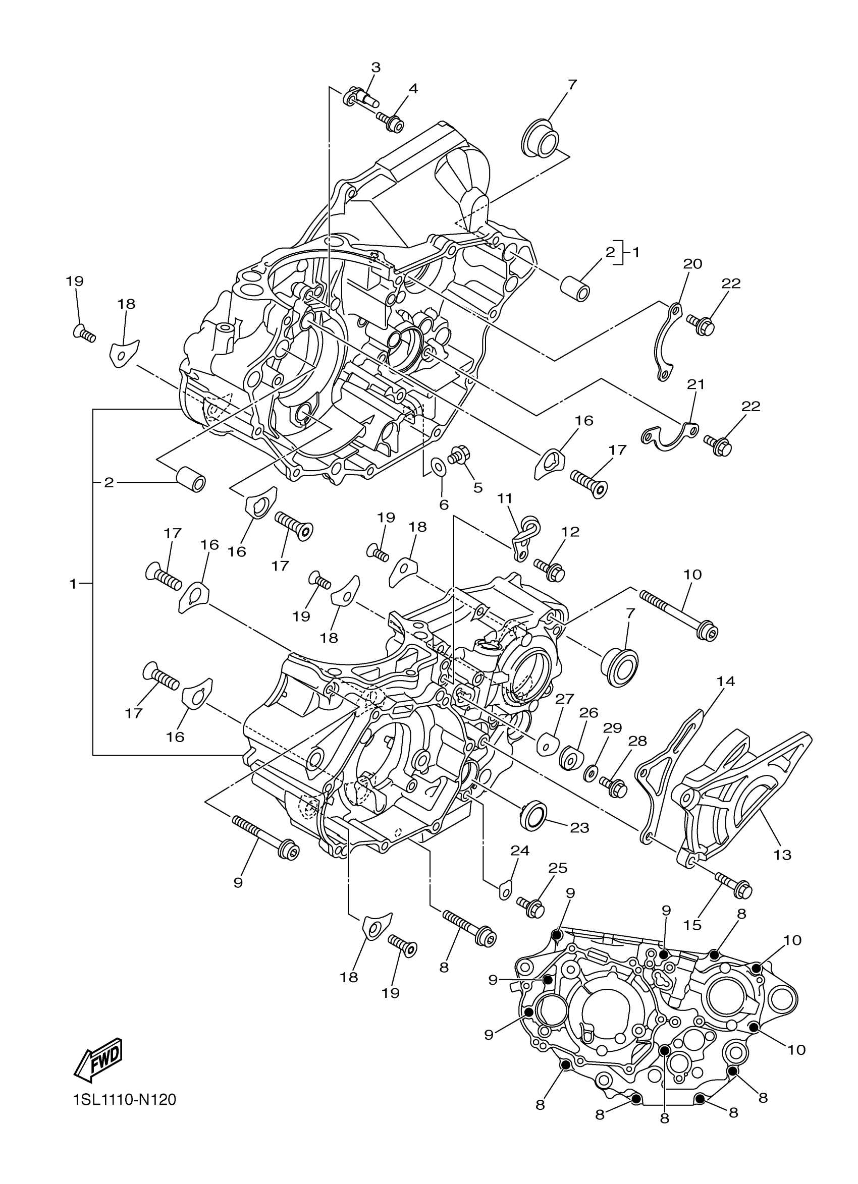 Yamaha YZ450FEW (YZ450F) 1SL10 2014 CRANKCASE Diagram