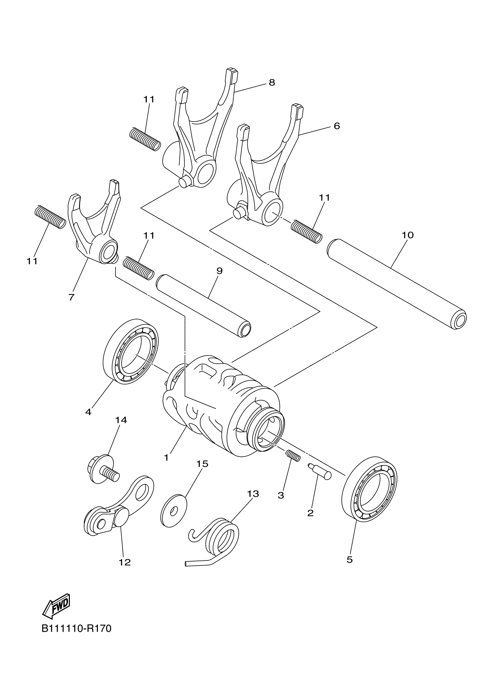 Yamaha YZ450FGL (YZ450F) B111 2016 SHIFT CAM FORK Diagram