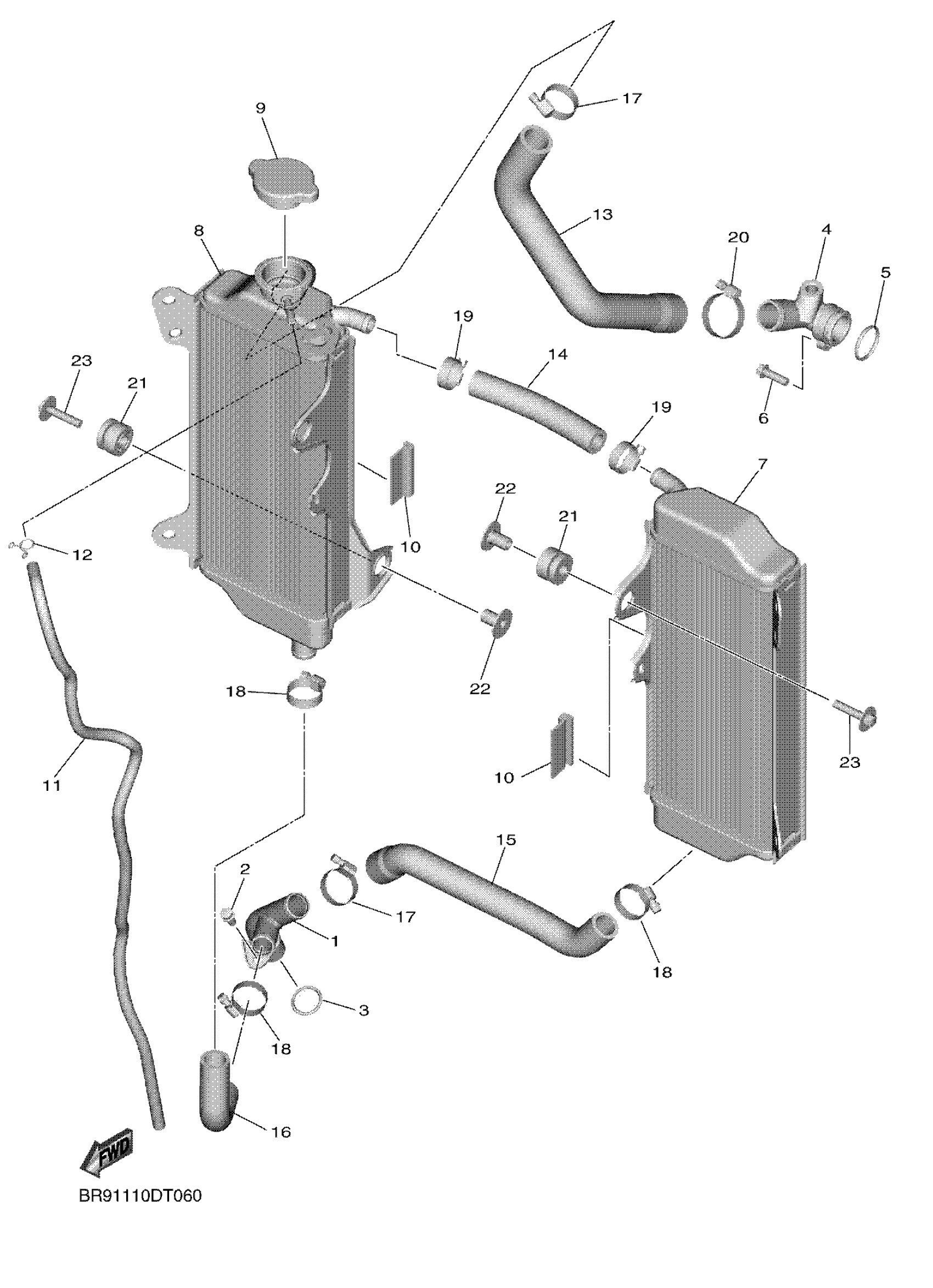 Yamaha YZ450FJW (YZ450F) BR910 2018 RADIATOR HOSE Diagram