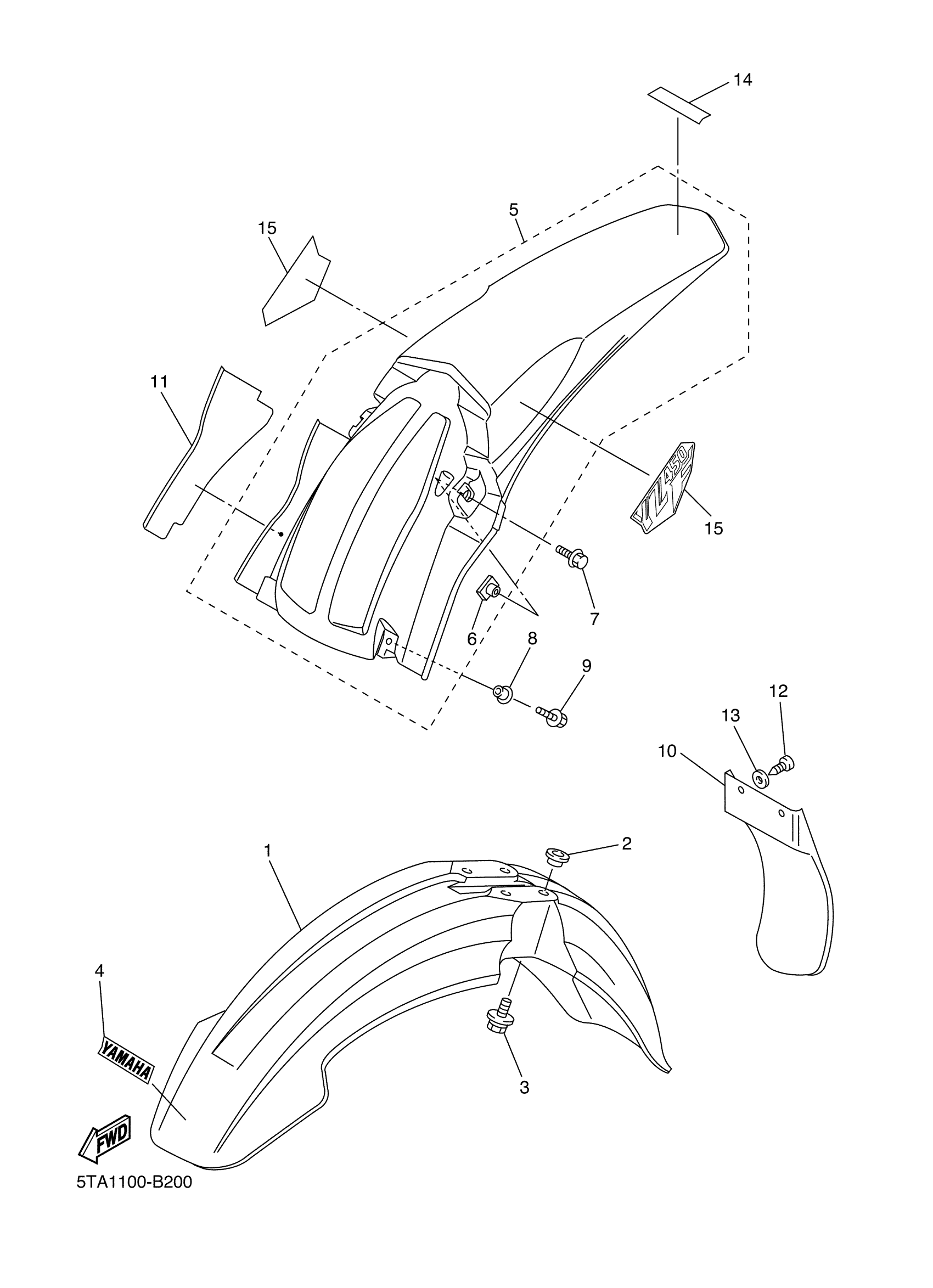 Yamaha YZ450FR (YZ450F) 5TA1 2003 FENDER Diagram